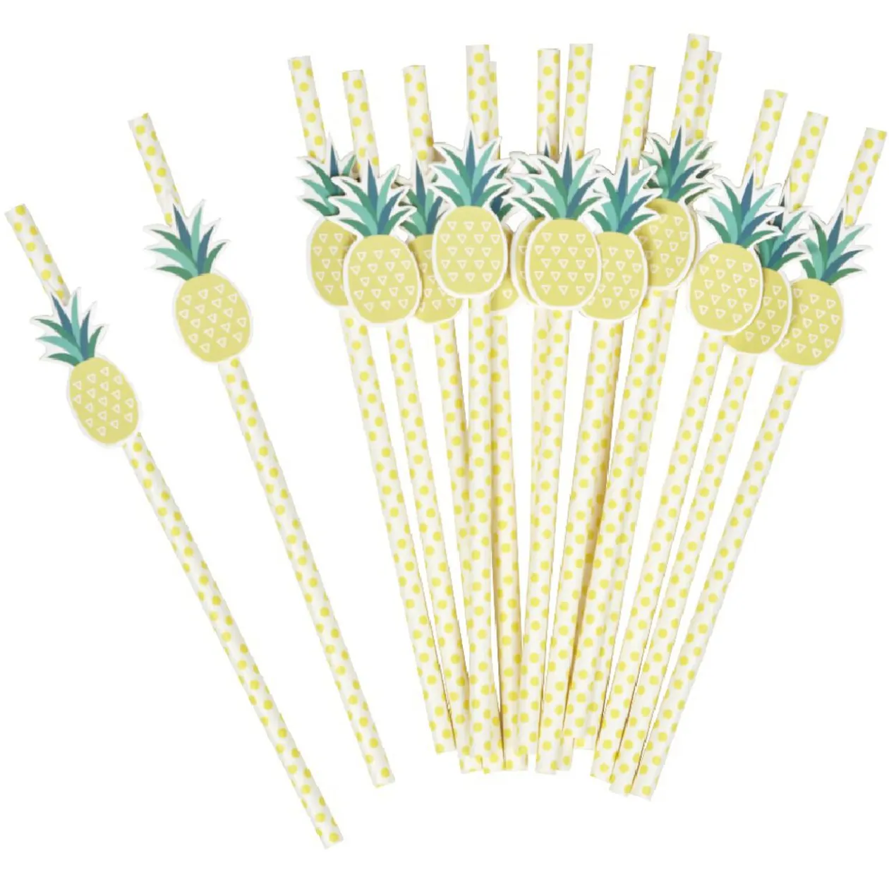 Mettez du fun lors de vos apéritifs avec ce lot de 16 pailles en papier de couleur blanche à pois jaune agrémentées d’un adorable ananas.