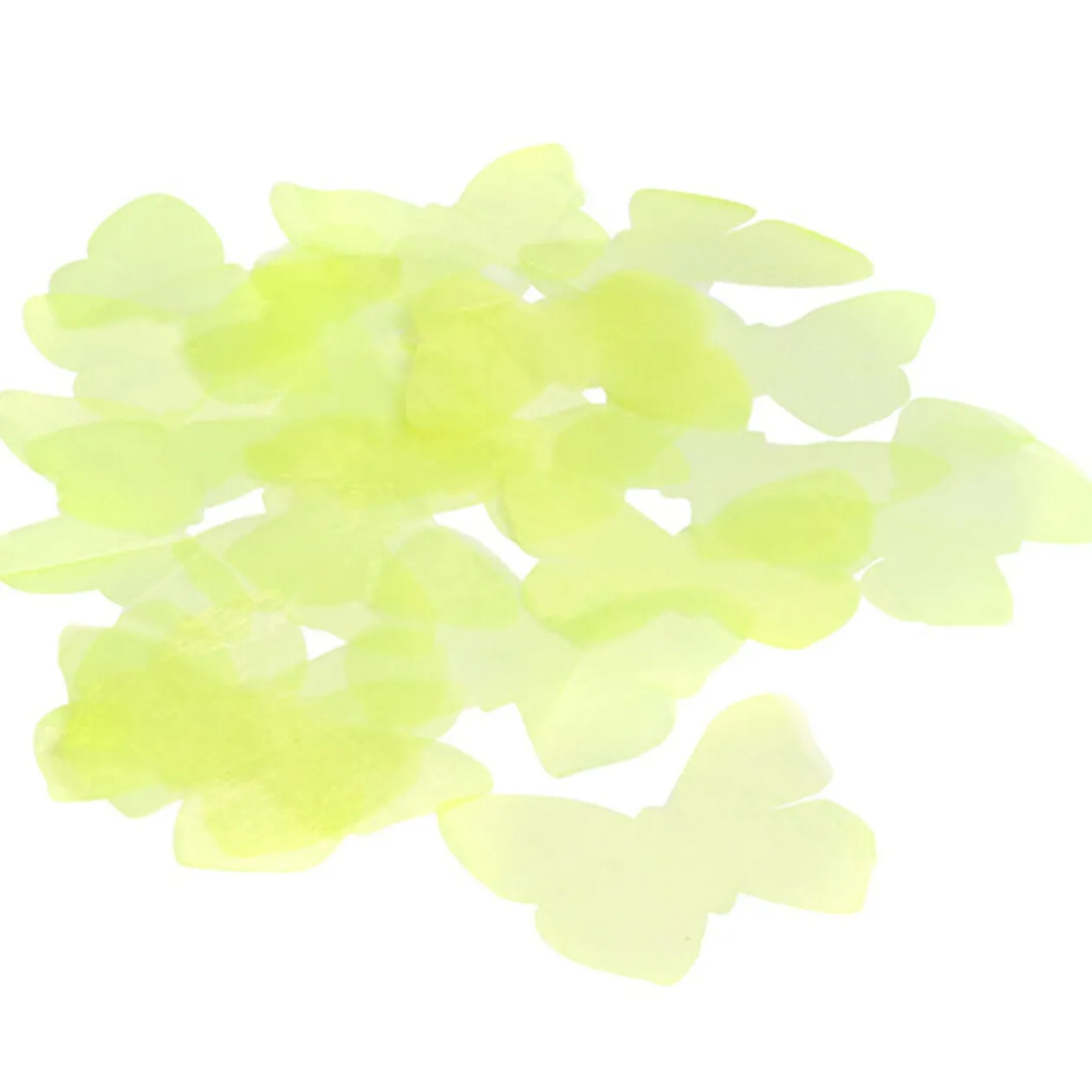 100 papillons en organza vert anis, L. 9,5 cm. Idéal pour votre décoration de mariage ou autre évènement.