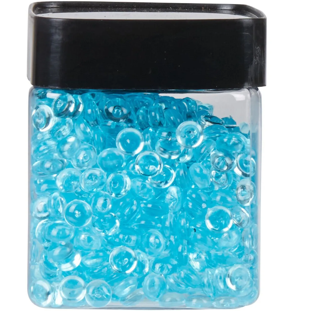 Boîte de perles plates décoratives bleues, cont. 130 gr, ø 0.5 cm environ, plastique.