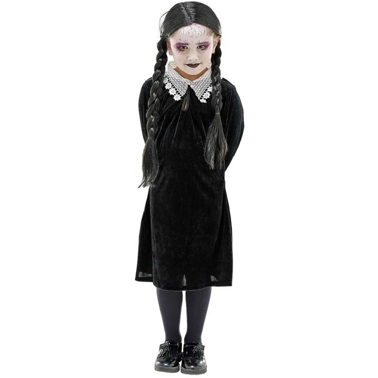 Perruque gothique noire composée de 2 nattes pour enfant.