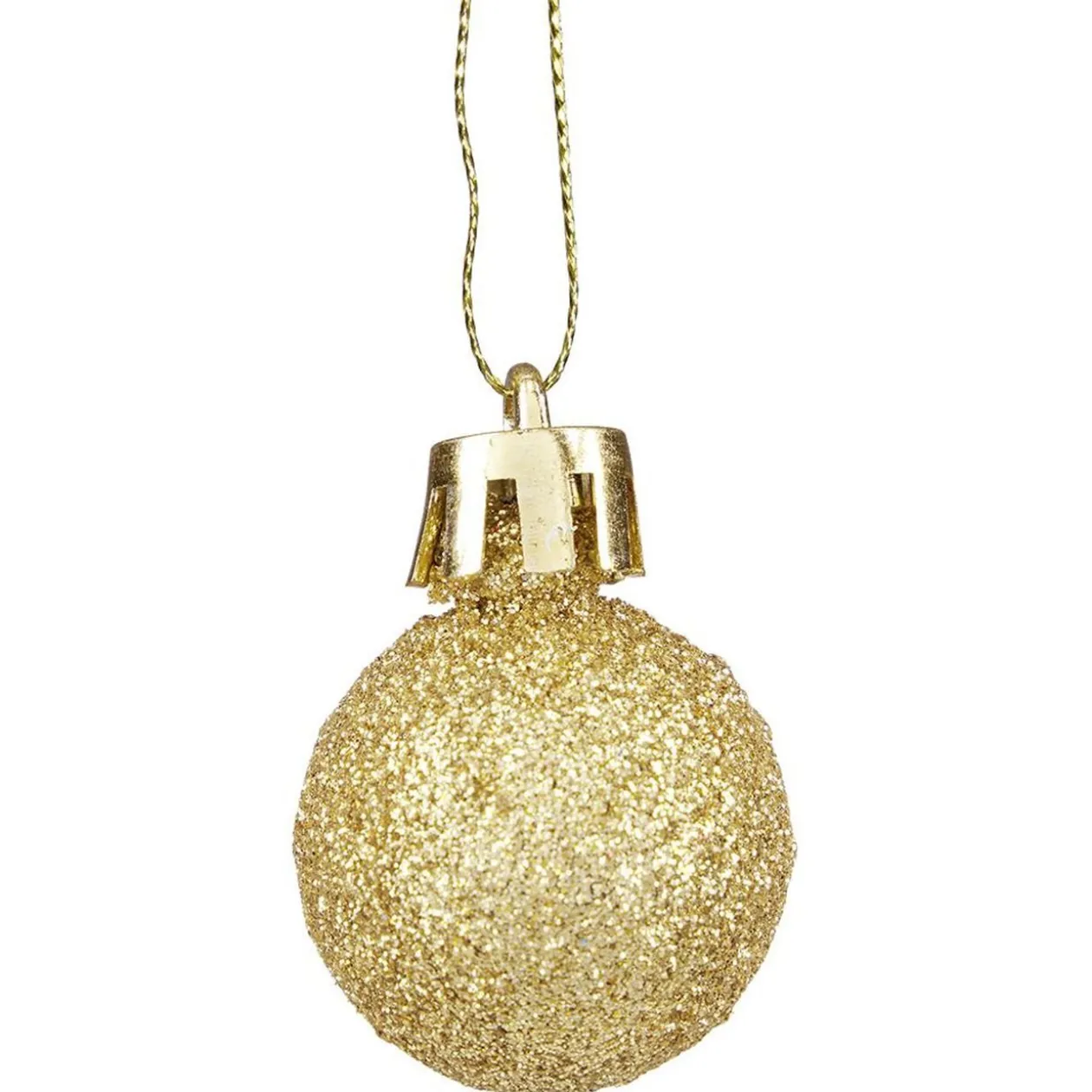 Lot de 12 boules de Noël pailletées, mates et brillantes de couleur dorée.