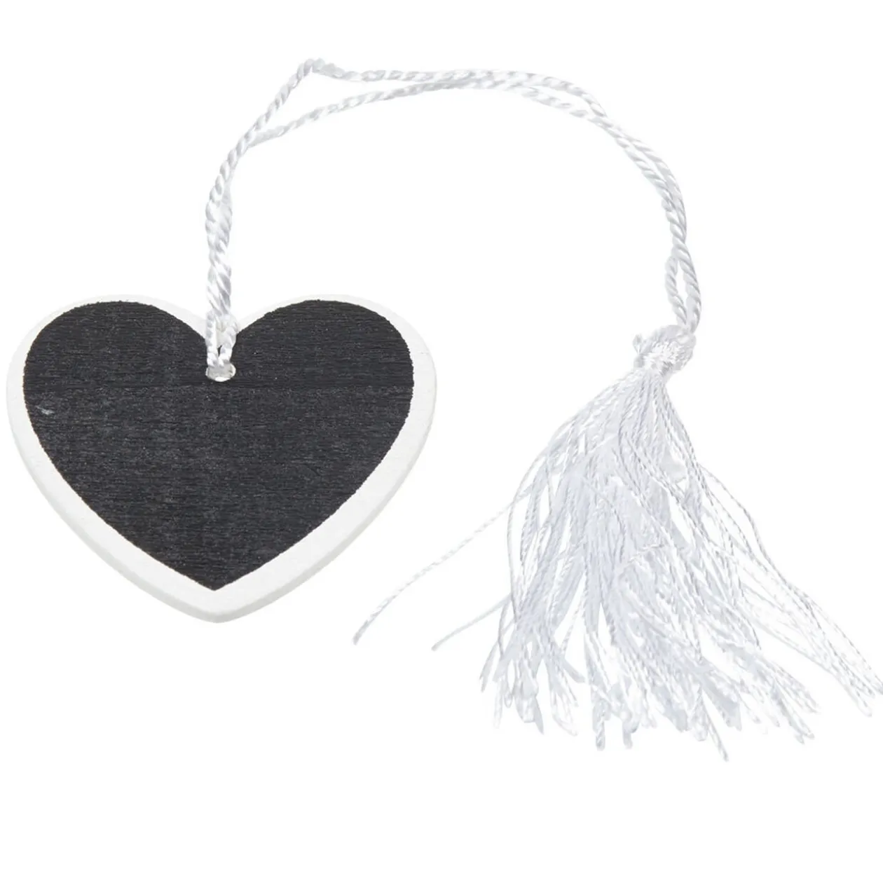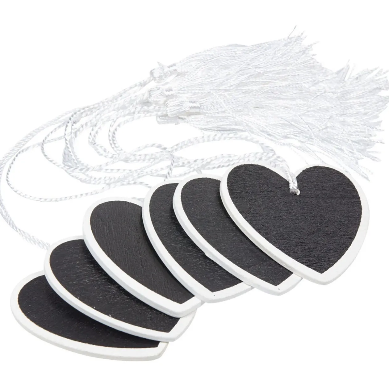 6 porte-noms ardoise en forme de coeur blanc, dim. 16x18x0,25 cm, MDF (panneau de fibres de bois).