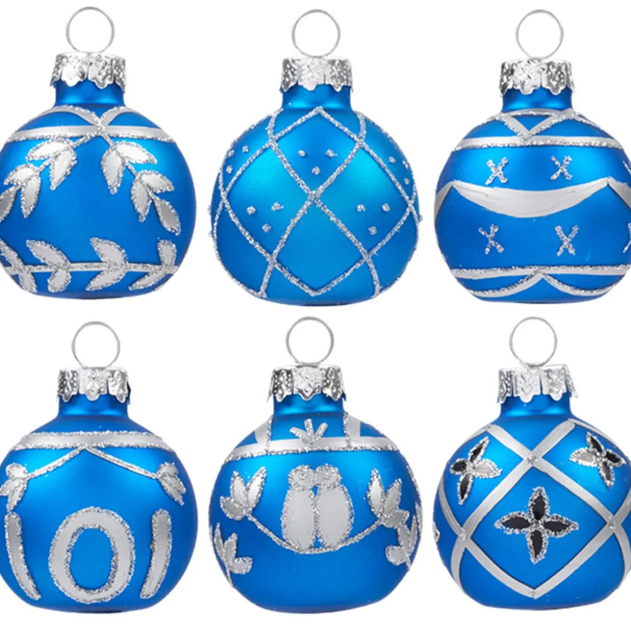 6 porte-noms bleus et argentés, Ø 4 cm, plastique.