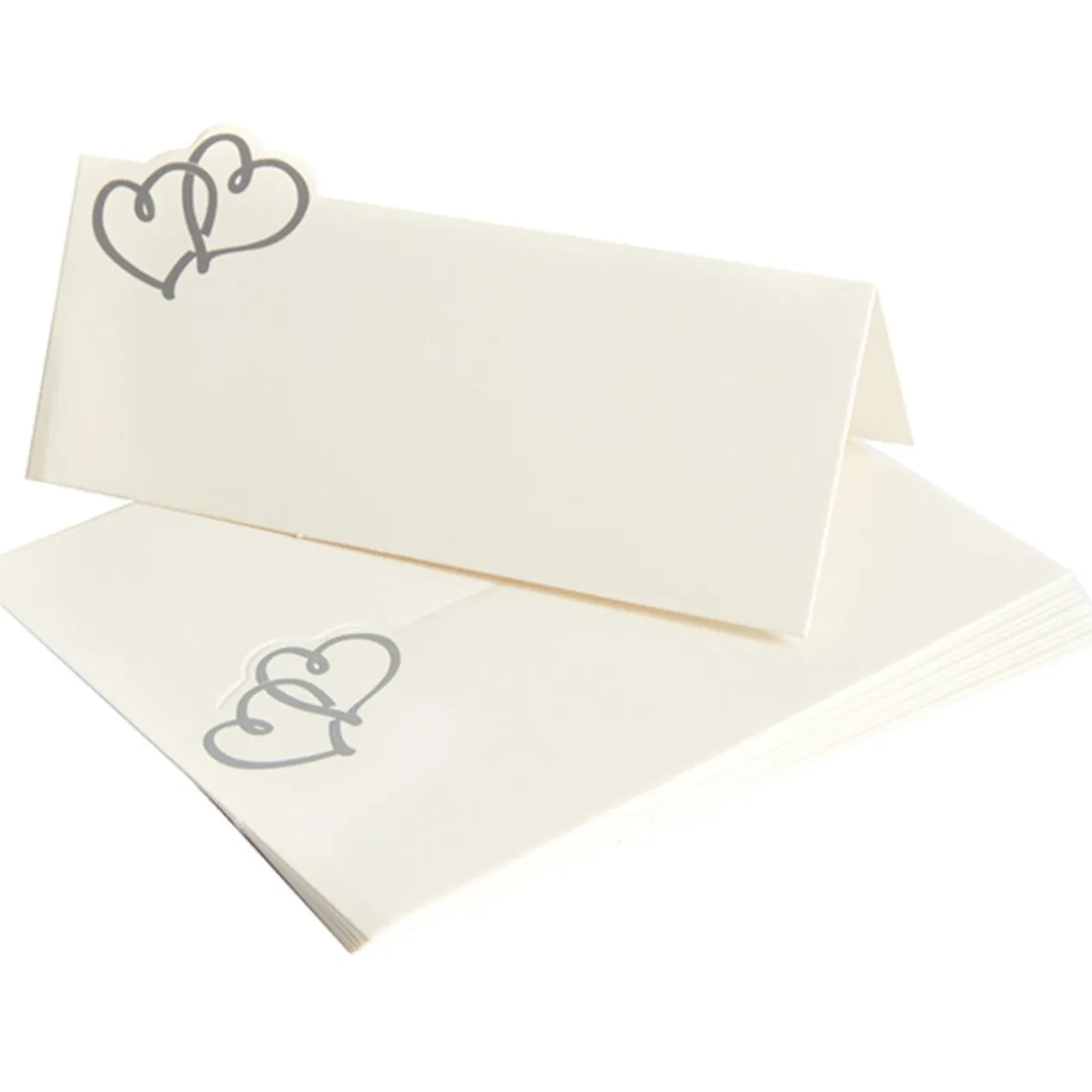 12 porte-noms ivoires design coeurs, dim. 9,5xh.7,5 cm, carton. Peut s’utiliser en décoration pour mariage ou autre évènement.