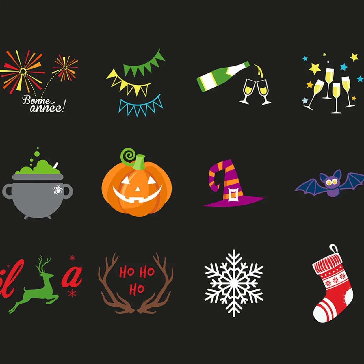 Motif de projection: 3 cassettes : halloween, fêtes,,,