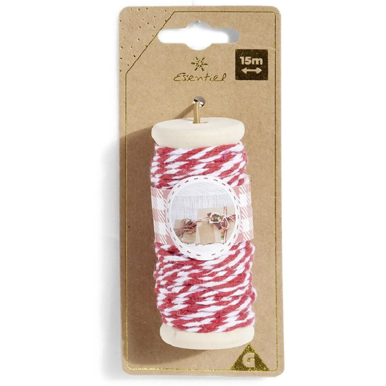 Ces 15 mètres de fil de coton rouge et blanc en rouleau sont idéals pour décorer vos emballages cadeaux.