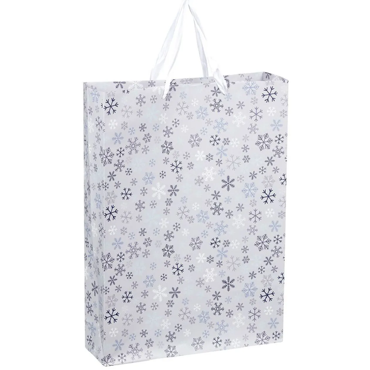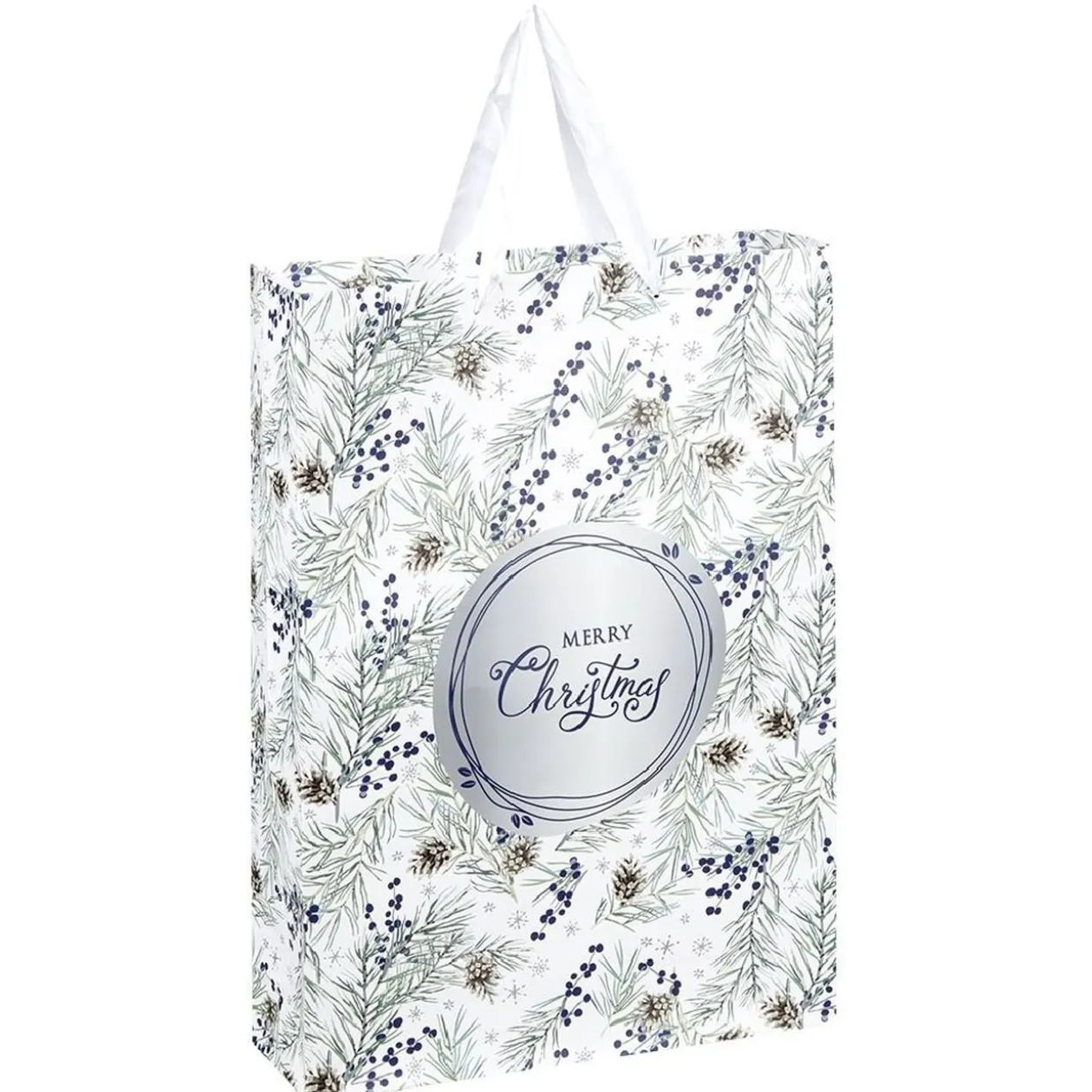 Sac cadeau de Noël taille L avec une note jardin d’Hiver, blanc de 3 modèles différents.
