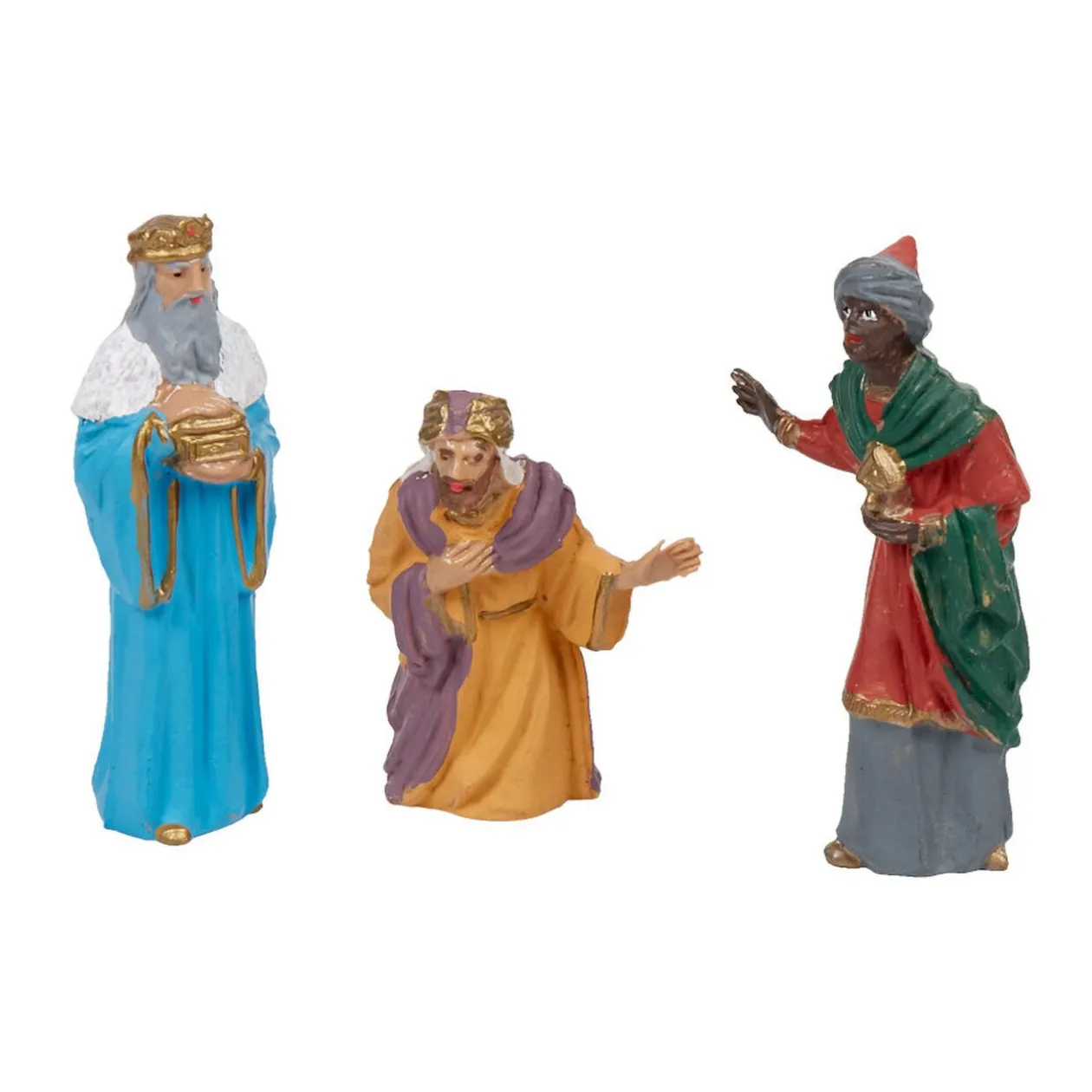 Personnages représentant les 3 rois mages debout, indispensable pour compléter la décoration de votre crèche de Noël.