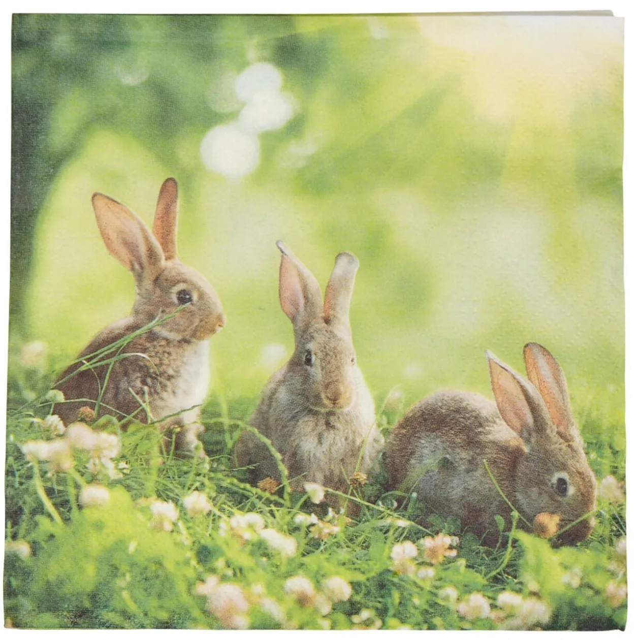 20 serviettes en papier design Pâques motif lapins, dim. 33×33 cm.