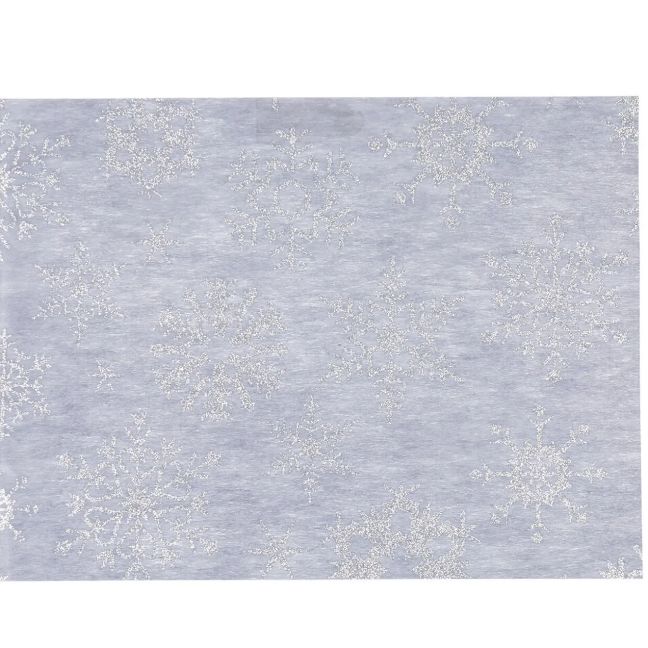 Lot de 8 sets de table en papier gris décoré de flocons argentés et pailletés.