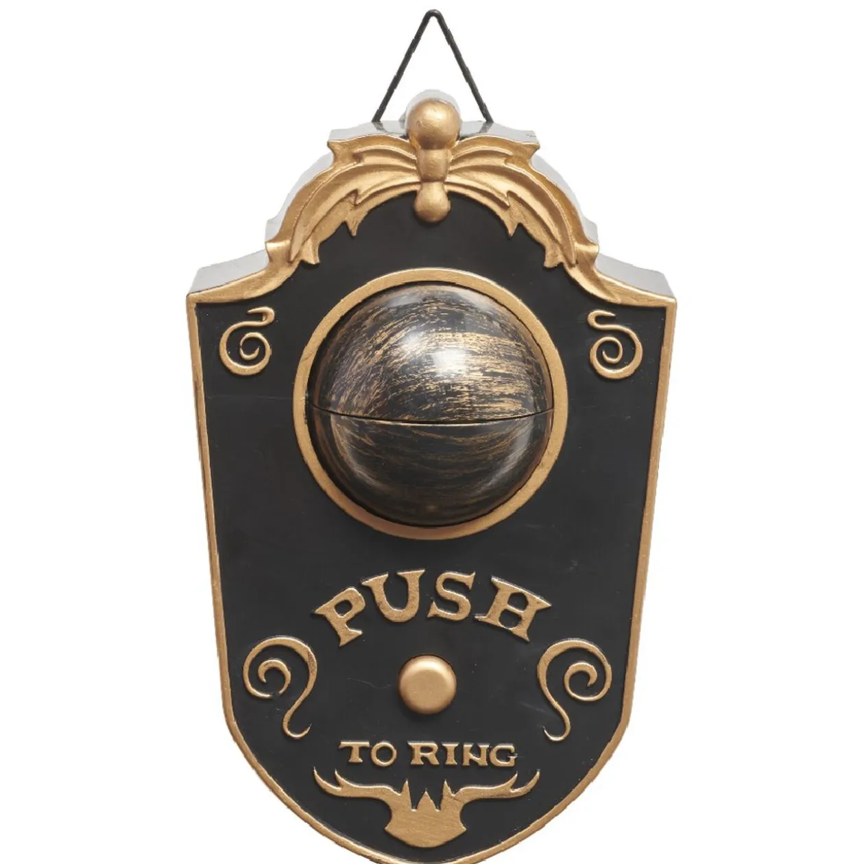 Sonnette noire inscription « Push to ring » avec oeil électrique qui bouge.