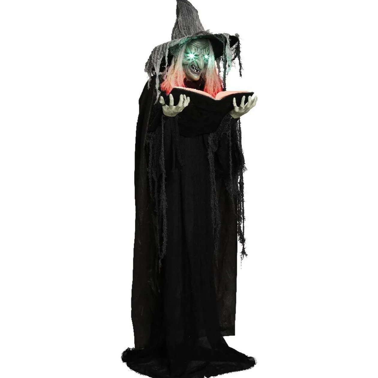 Cette sorcière lumineuse et sonore semble préparer un mauvais sort avec son livre entre les mains…