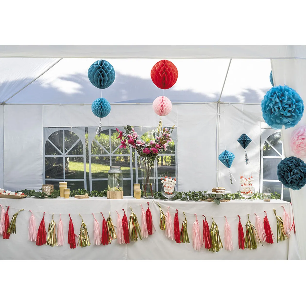 Cette suspension en forme de 2 boules superposées en papier rose agrémentée de son pompon sera parfaite pour décorer votre terrasse abritée ou pour fêter un évènement spécial.