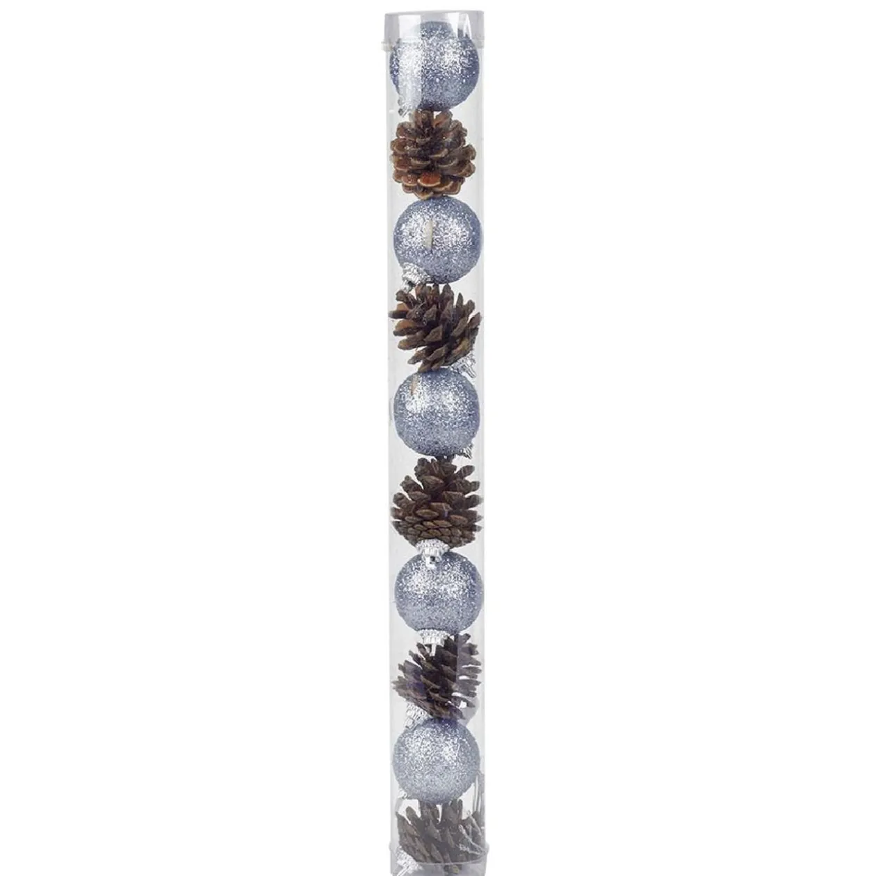 Lot de 5 boules de Noël argentées et de 5 pommes de pin à accrocher sur le sapin et partout ailleurs durant les fêtes.