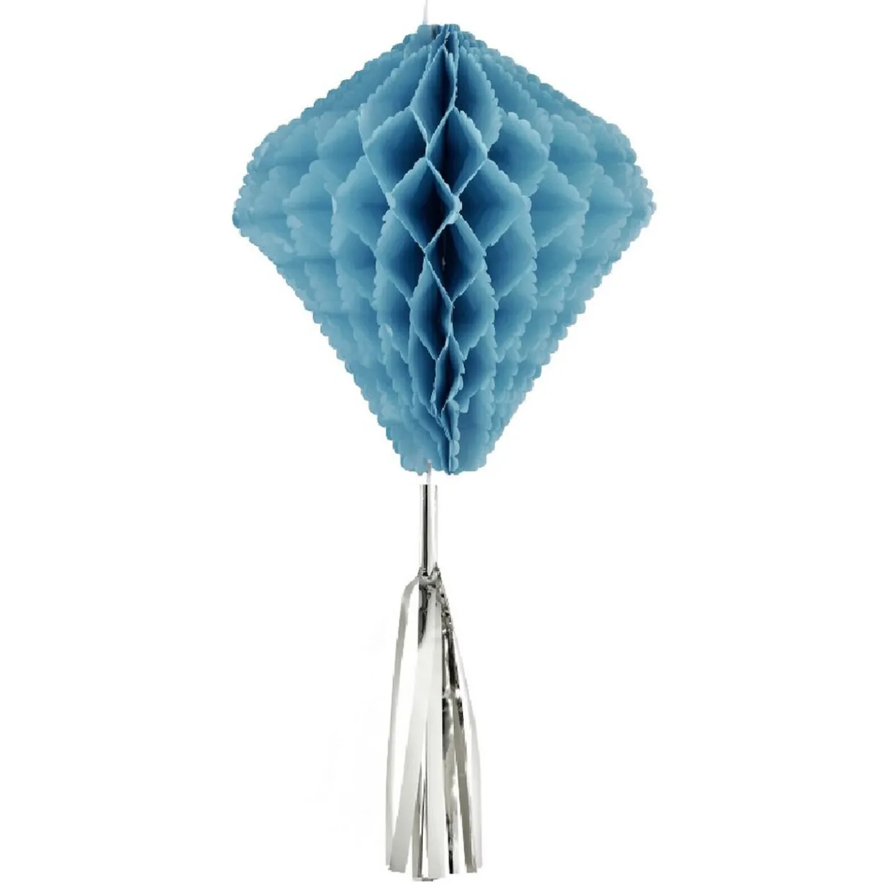 Lot de 3 suspensions en papier bleu de forme géométrique pour décorer vos soirées et évènements.