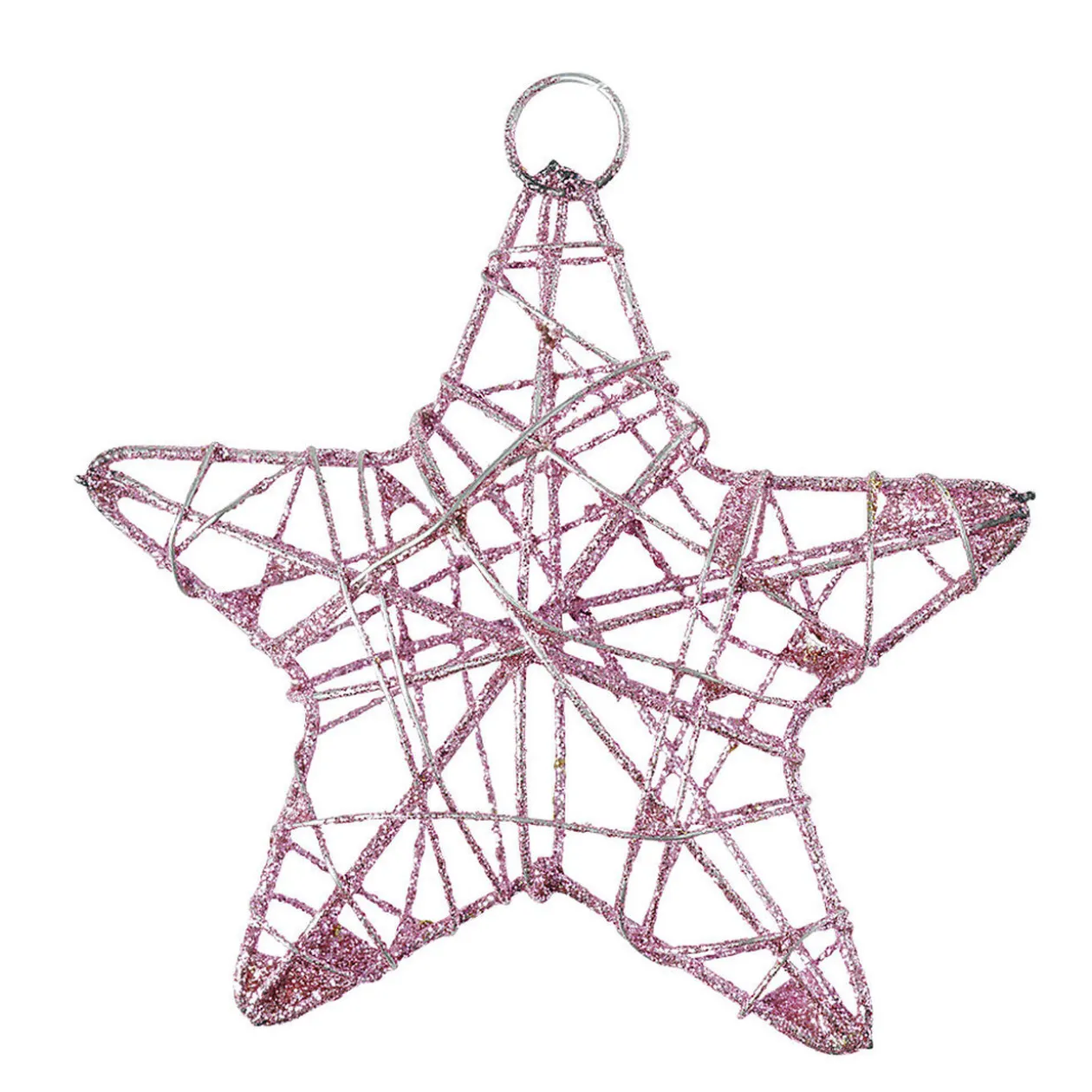 Étoile de Noël originale avec son design filaire en métal rose pailleté, à suspendre à votre sapin pour une décoration de fêtes des plus glamour…