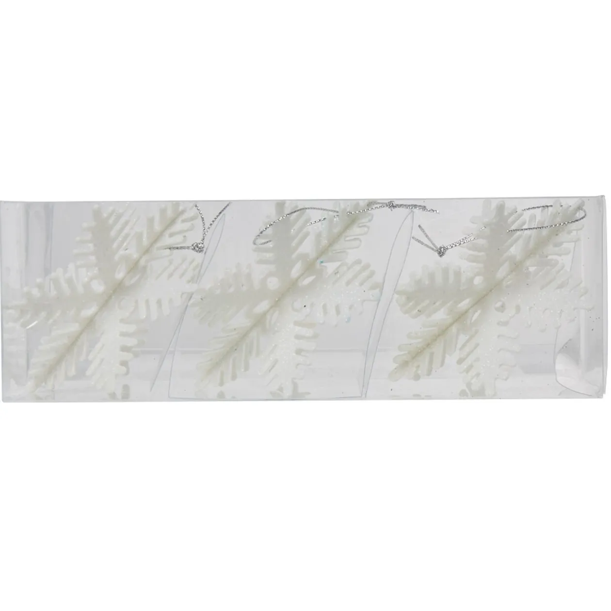 3 flocons argentés ou blanc à suspendre en forme de feuilles pour décoration de Noël.