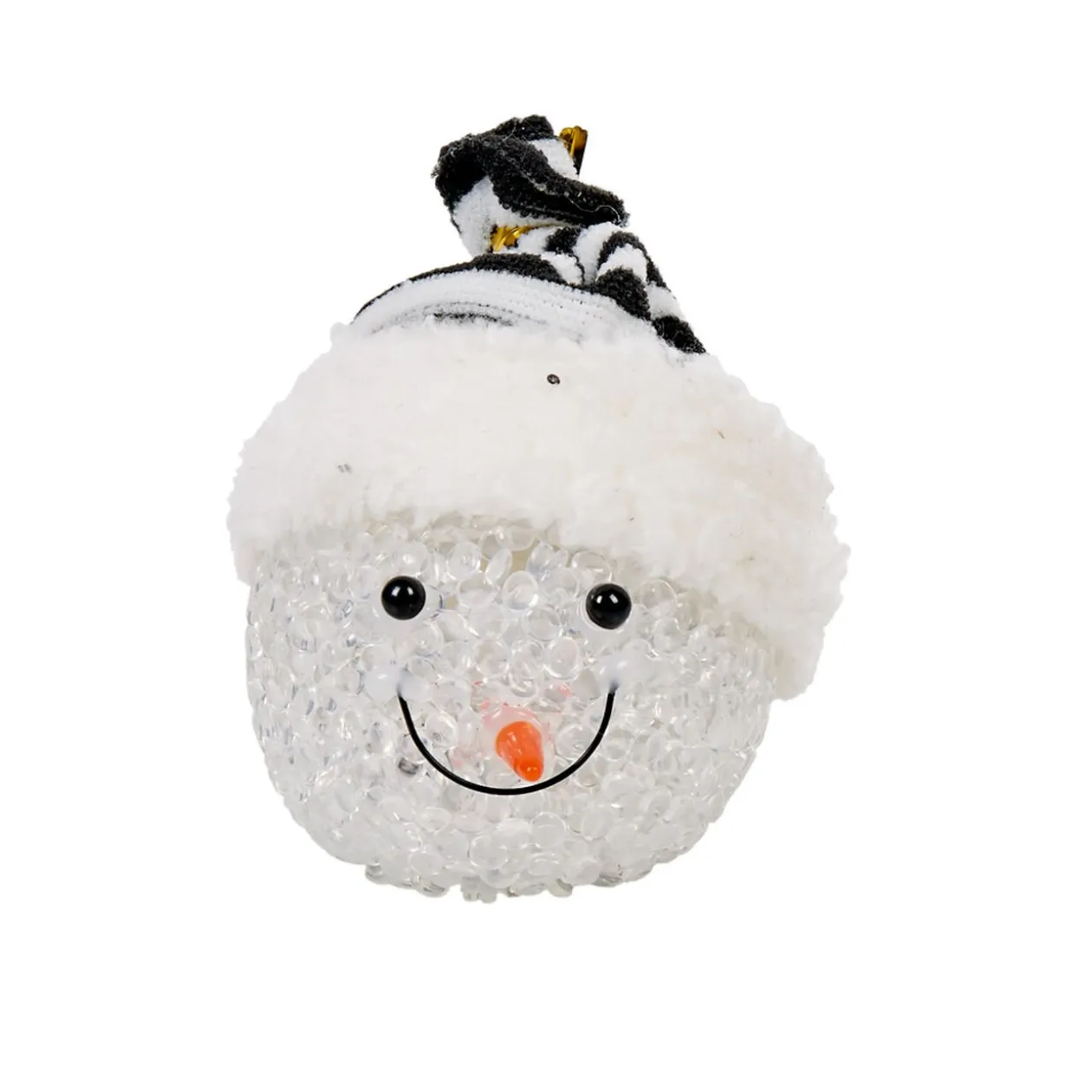 Cette boule lumineuse originale en forme de bonhomme de neige avec bonnet rayé noir et blanc viendra illuminer la décoration de votre intérieur à l’occasion des fêtes de Noël.