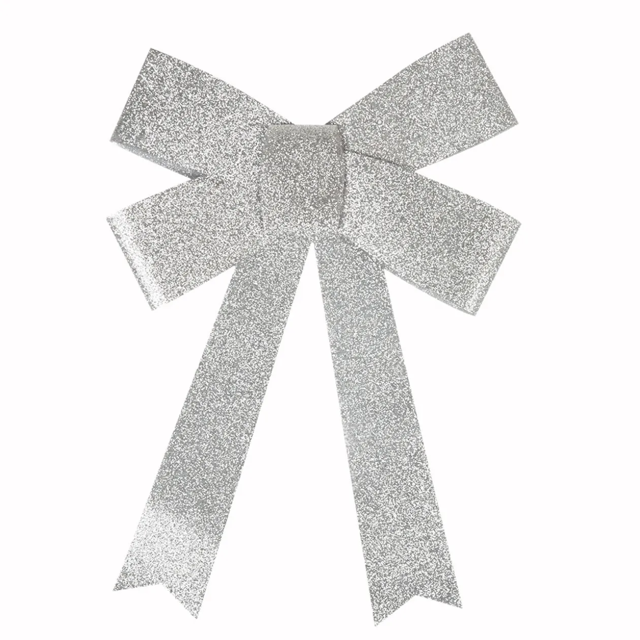 Noeud argenté pailleté à suspendre, décoration de Noël, dim. 31×23 cm, plastique.