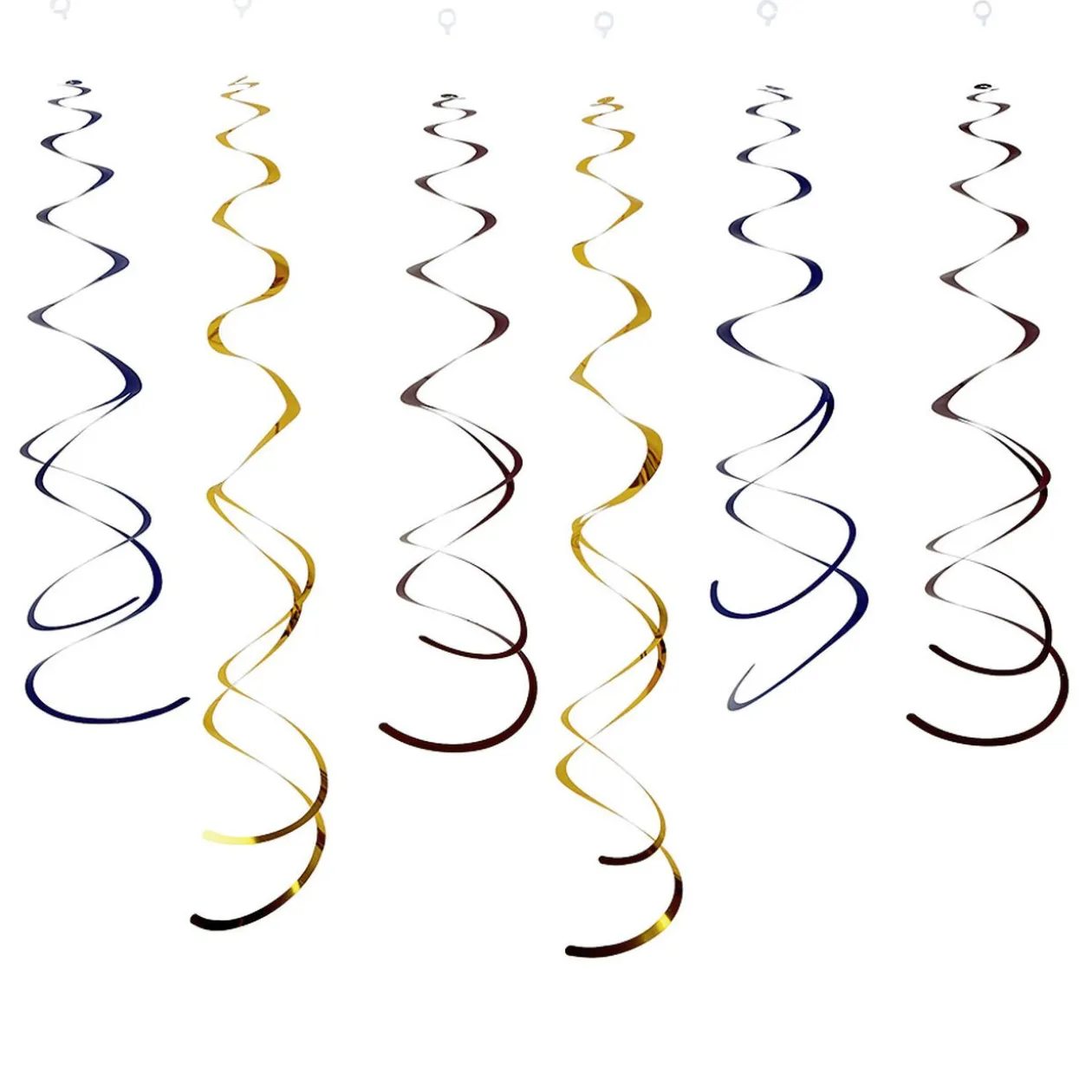 Suspension à spirales en papier de couleur bleu, rose et doré.