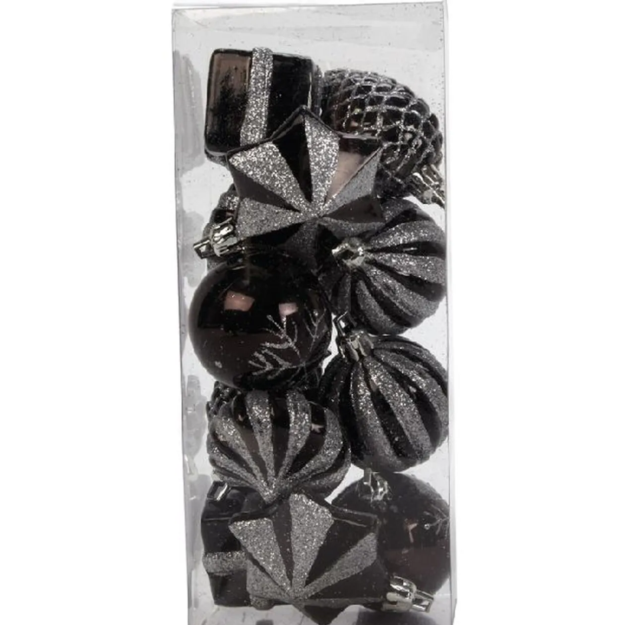 Décorations de Noël pour sapin X12, en plastique, de couleurs bleues ou noires avec paillettes et de différentes formes (cadeaux, pommes de pin, boules). 2 coloris différents, disponibilité selon arrivage.Tous les objets de décoration sont chez GIFI.