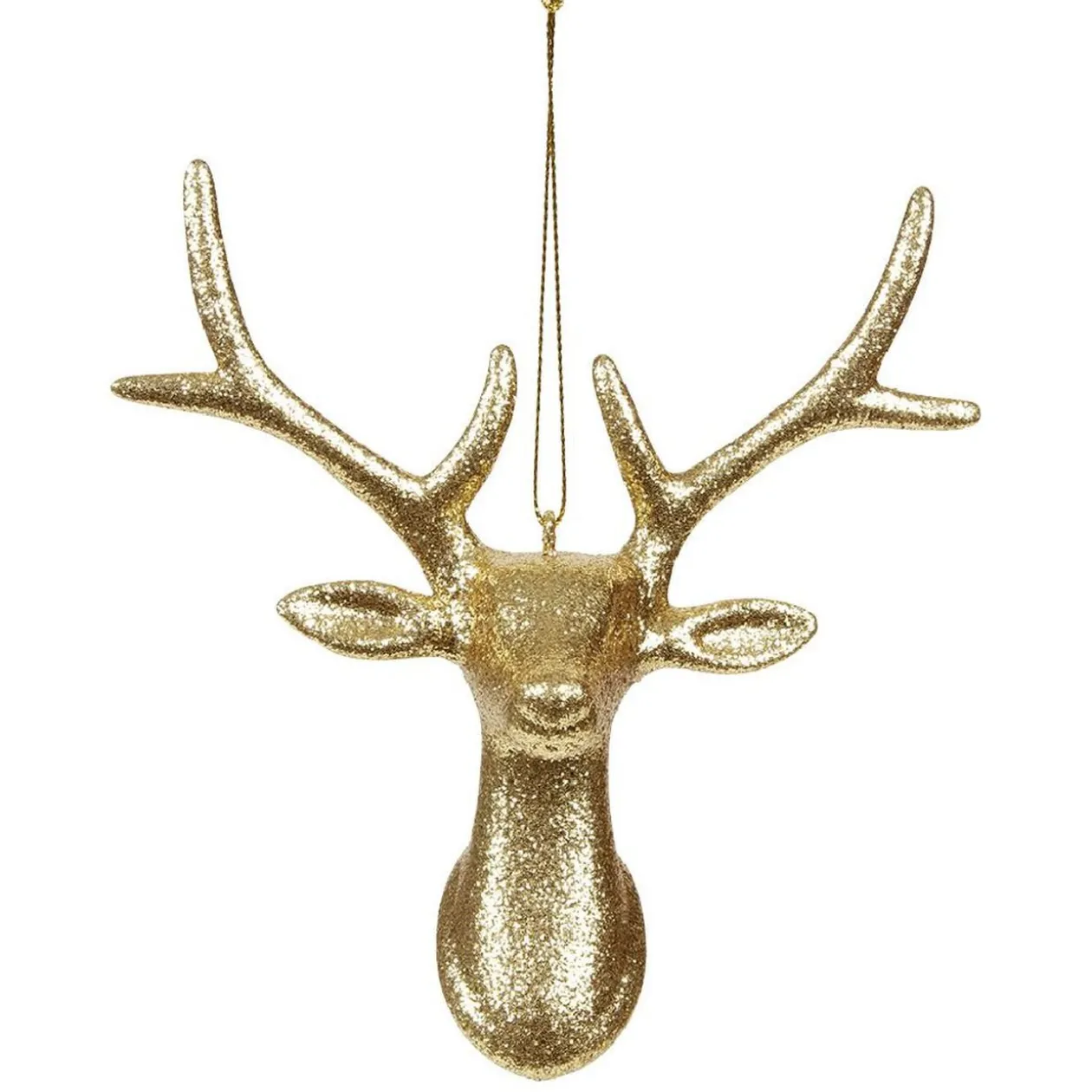 Tête de renne dorée à paillettes à suspendre au sapin.