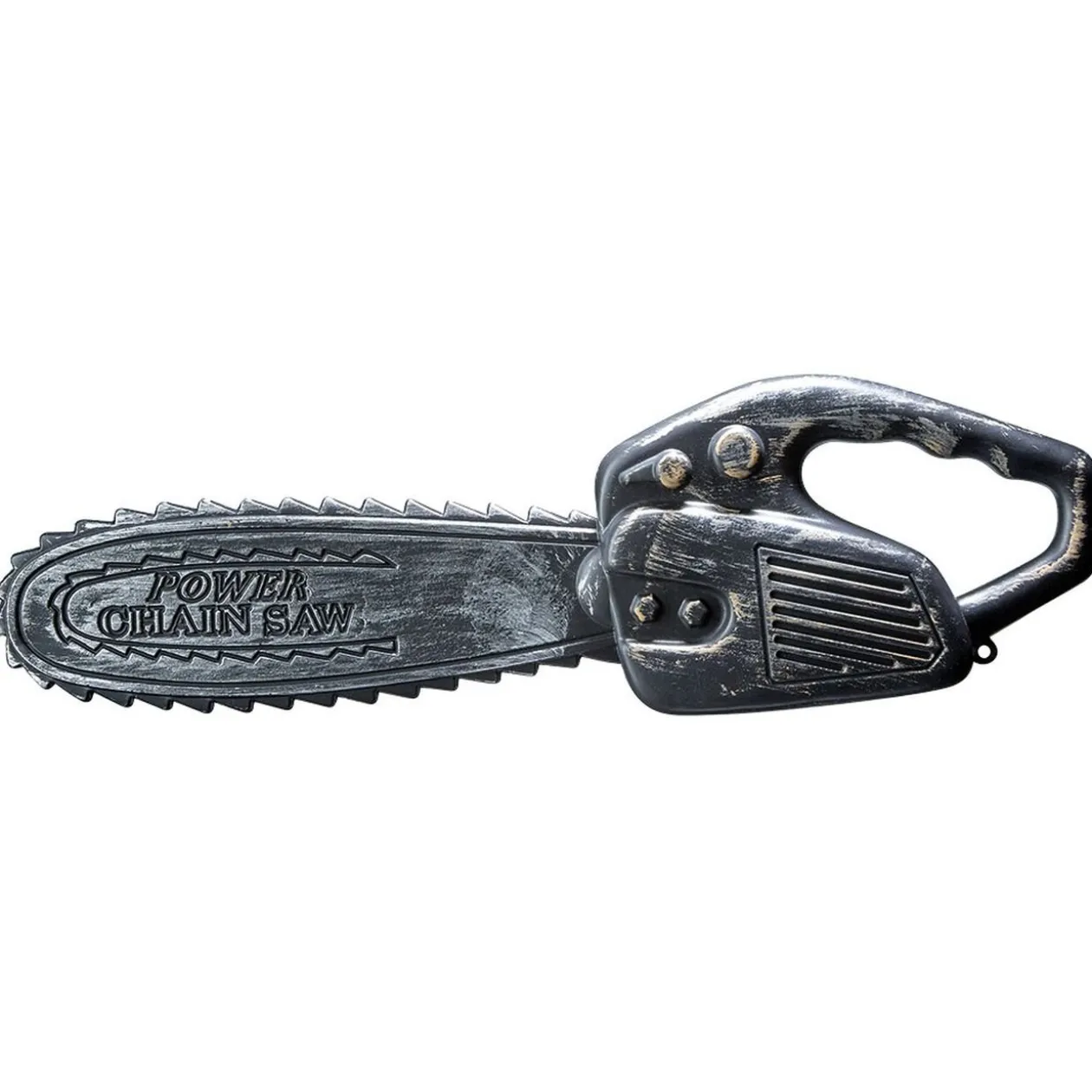 Soyez le boureau d’Halloween avec cette tronçonneuse en plastique gris.