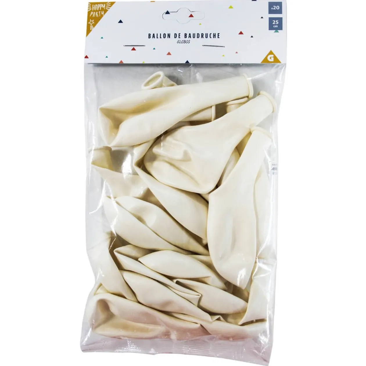 Lot de 20 ballons blanc en latex pour apporter une décoration festive à vos soirées.