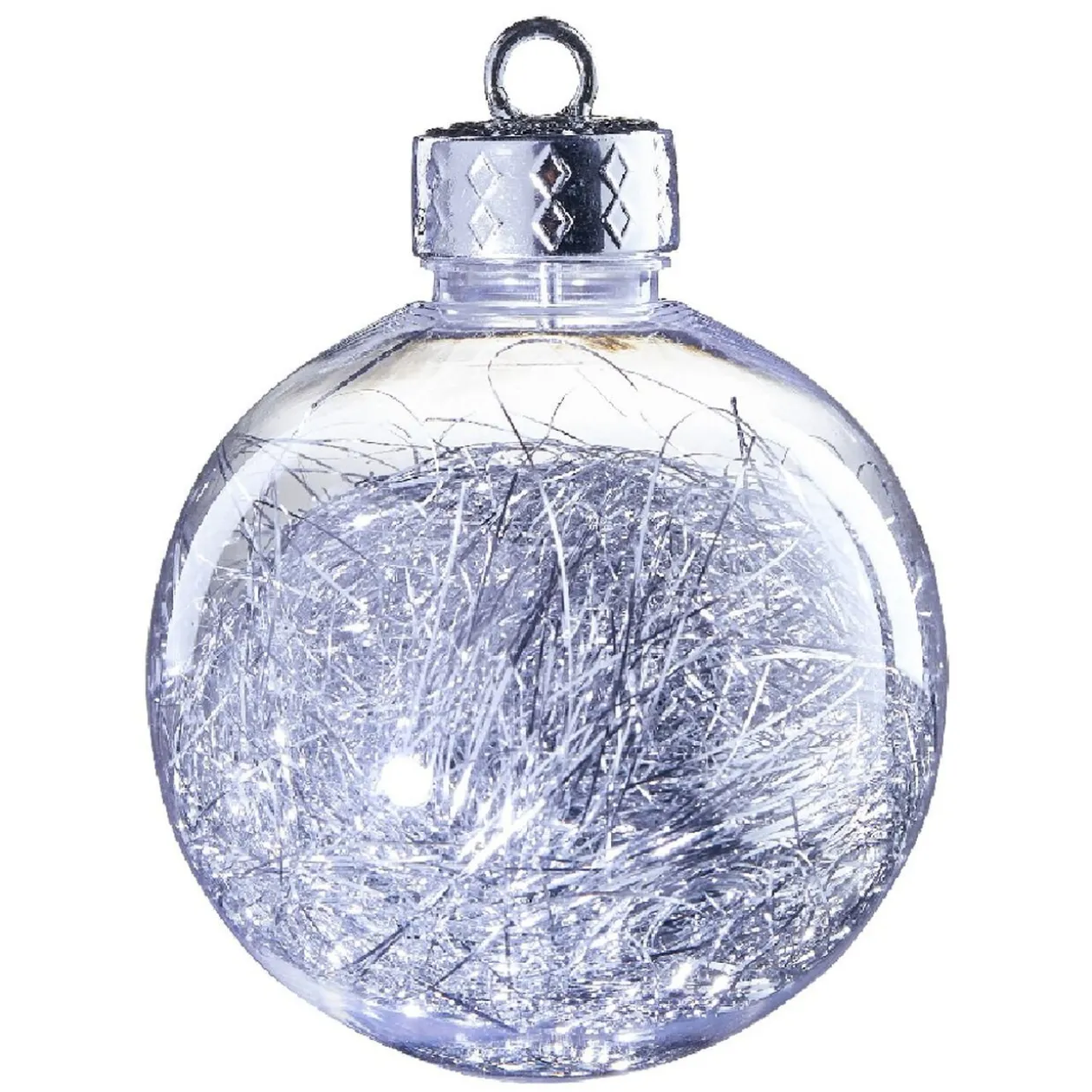 Lot de 15 boules de Noël à suspendre, de forme ronde avec intérieur décoré par des fils métallisés argentés, dorés, blancs et rouges. Idéales pour apporter une touche brillante et chic à votre sapin !