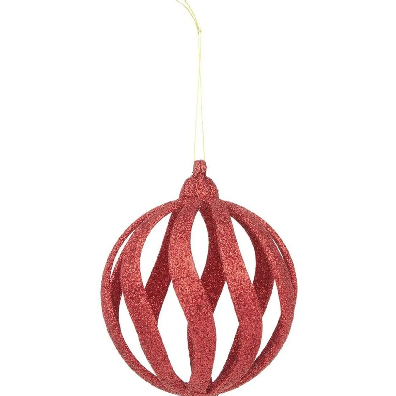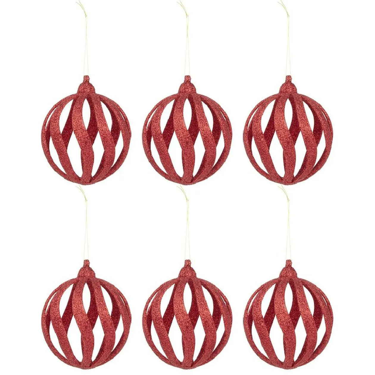 Lot de 6 boules de Noël ajourées rouges à accrocher au sapin, essentiel pour une décoration de Noël réussie.