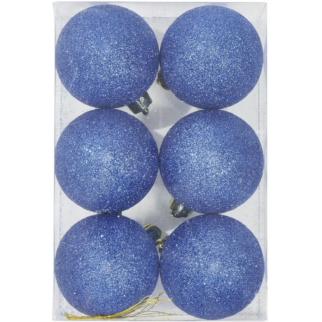 Lot de 6 boules de Noël bleues à paillettes à accrocher sur le sapin et partout ailleurs durant les fêtes.
