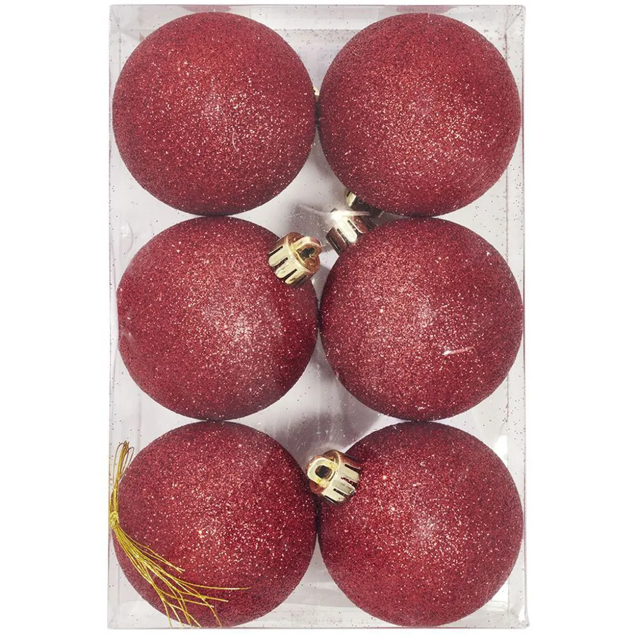 Lot de 6 boules de Noël rouges à paillettes à accrocher sur le sapin et partout ailleurs durant les fêtes.