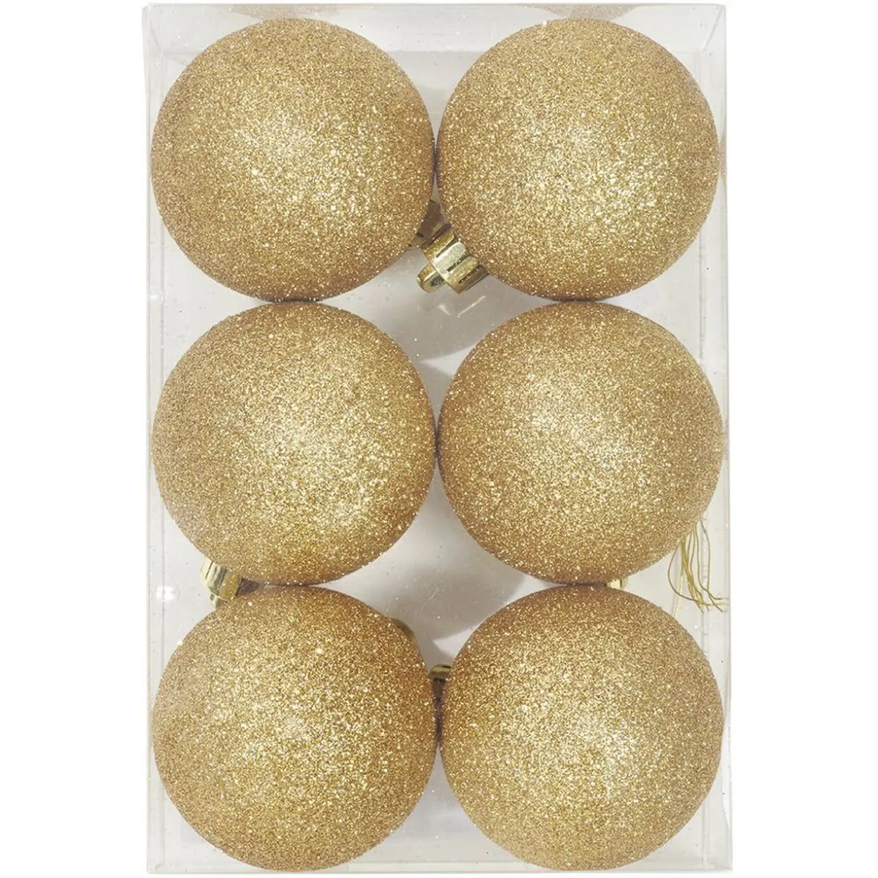 Lot de 6 boules de Noël dorées à paillettes à accrocher sur le sapin et partout ailleurs durant les fêtes.