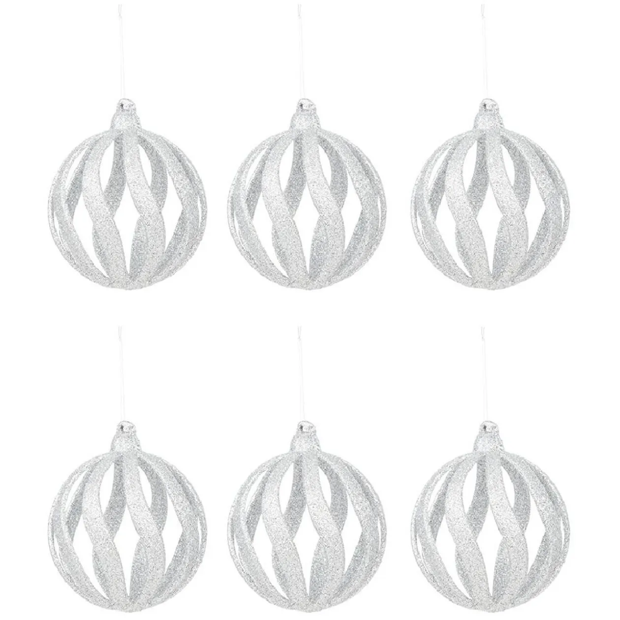 Lot de 6 boules de Noël argentées ajourées à accrocher au sapin, essentiel pour une décoration de Noël réussie.