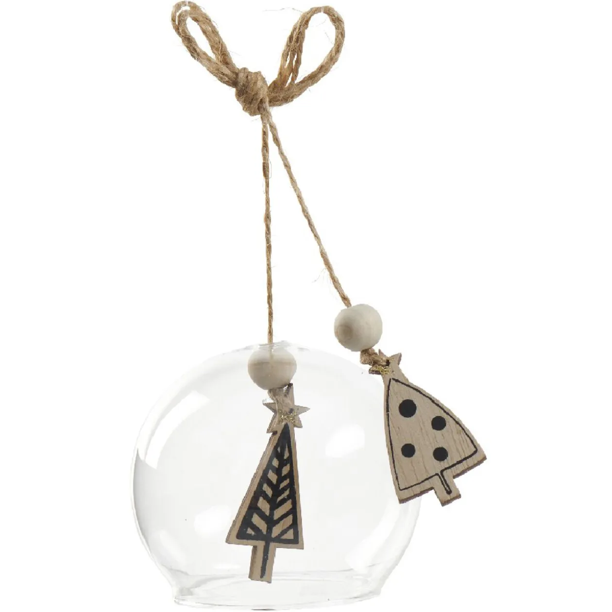Laissez-vous tenter par des ornements originaux pour embellir votre arbre de Noël en toute simplicité ! Découvrez cette boule en verre à suspendre et ses mini sapins de Noël couleur bois, disponibles en 3 modèles différents. Dotée de 2 petits sapins, cette boule transparente sera idéale pour apporter un souffle nouveau et original à votre déco de Noël, en toute sobriété. Facile à suspendre, cette boule de Noël au design unique n’attend que vous pour passer les fêtes de la plus joyeuse des manières !