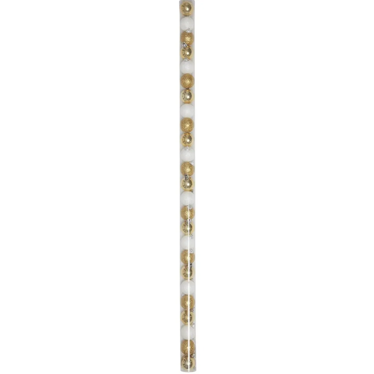 25 boules de Noël dorées et blanches, ø 4 cm, plastique.