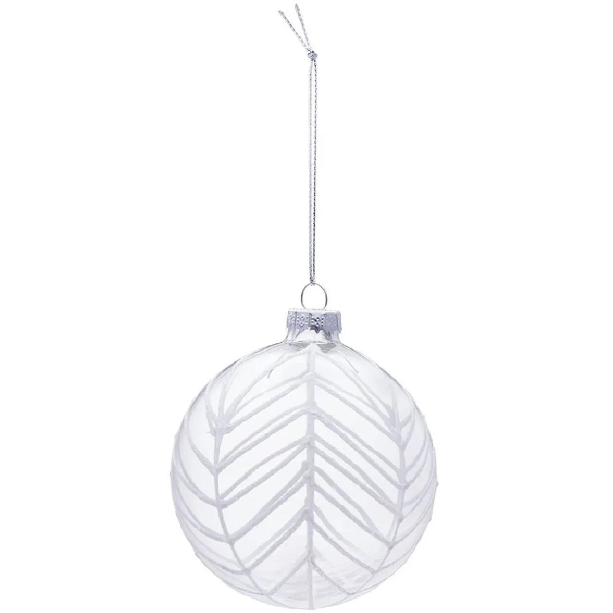 Boule de Noël transparente en verre à accrocher au sapin pour un Noël givré.