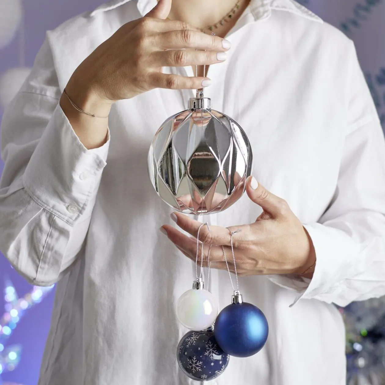 Boule de Noël origami argenté ou bleue Ø12cm – 2 coloris