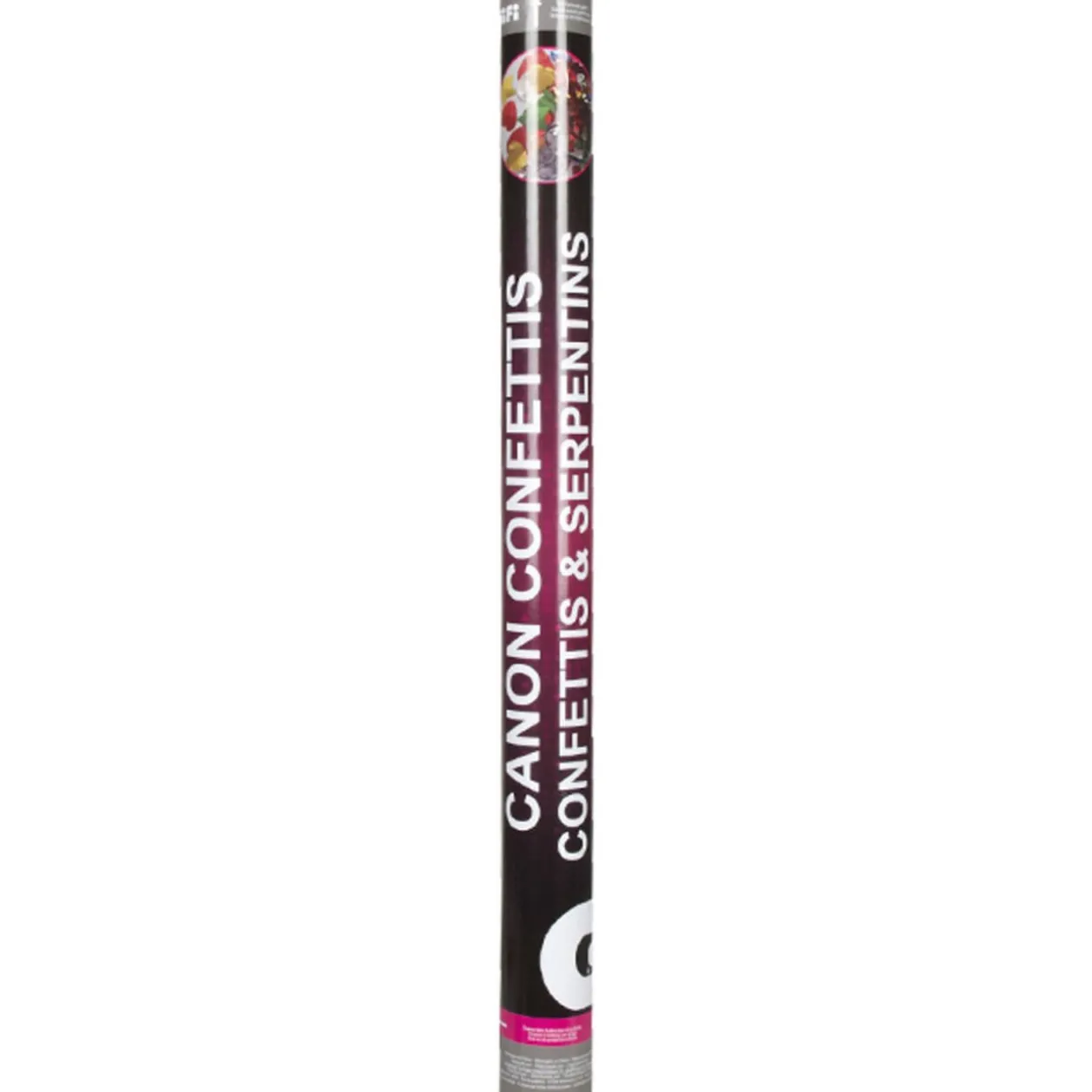 Canon à confettis et serpentins multicolores, h. 58 cm, plastique et carton.
