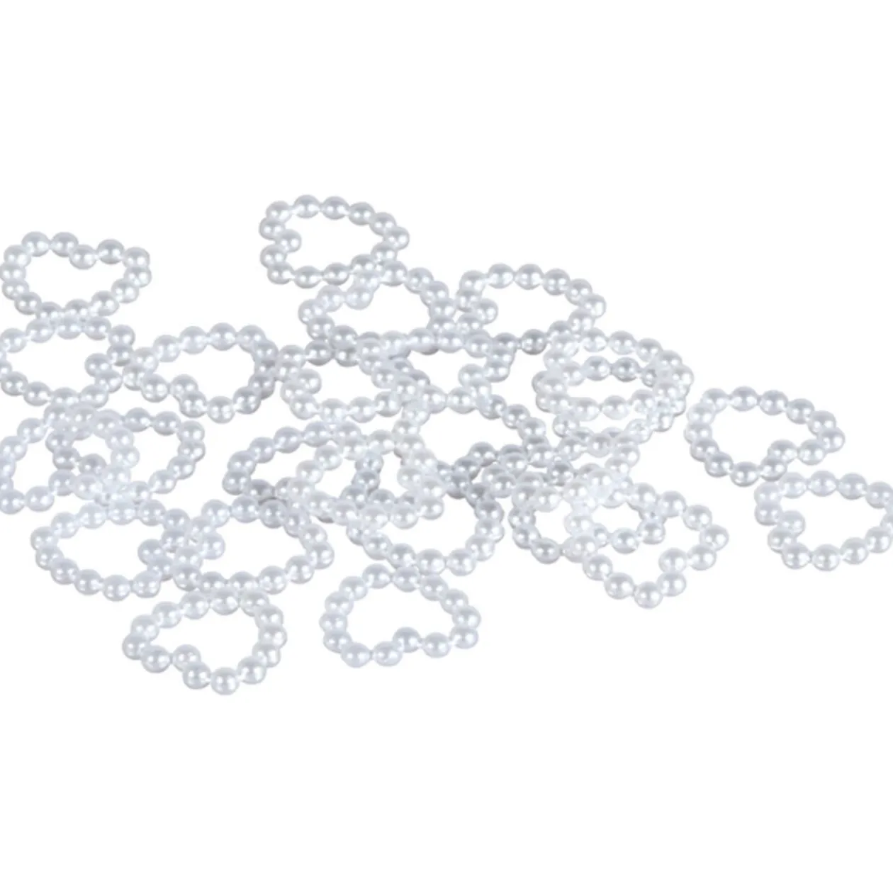 50 coeurs en perles blanches, L. 1 cm, plastique. Peut s’utiliser en décoration de table pour mariage ou autre évènement.