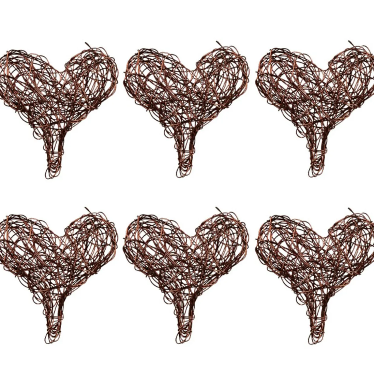 6 coeurs chocolat, dim. 6×6,5 cm, métal. Peut s’utiliser en décoration pour mariage ou autre évènement.