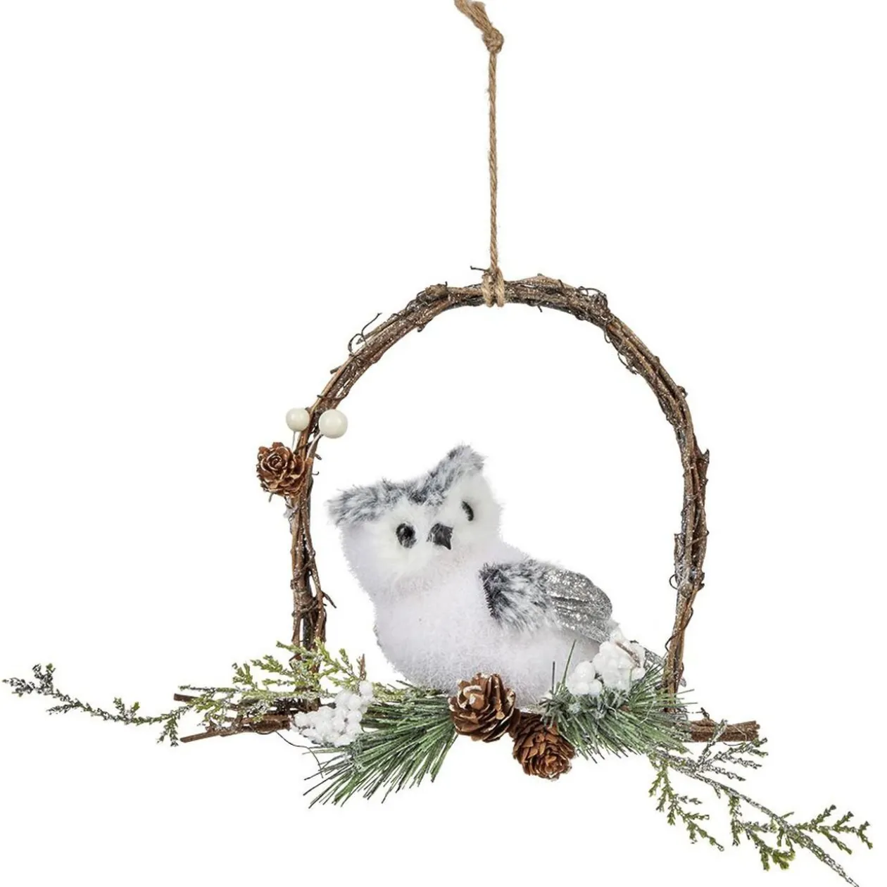 Couronne avec une chouette, un oiseau ou un hérisson argenté à suspendre à votre porte en période de fêtes de fin d’année pour un Noël givré.