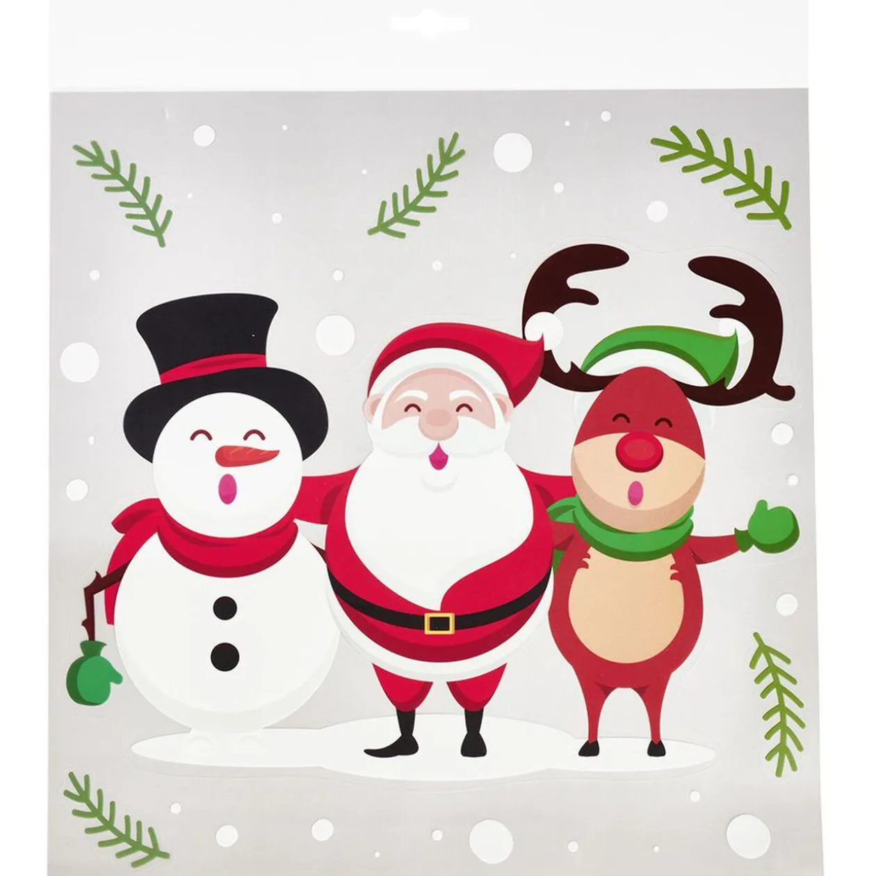 Stickers électrostatiques représentant un Père Noël, un bonhomme de neige et un renne qui chantent pour décorer vos fenêtres en période Noël.