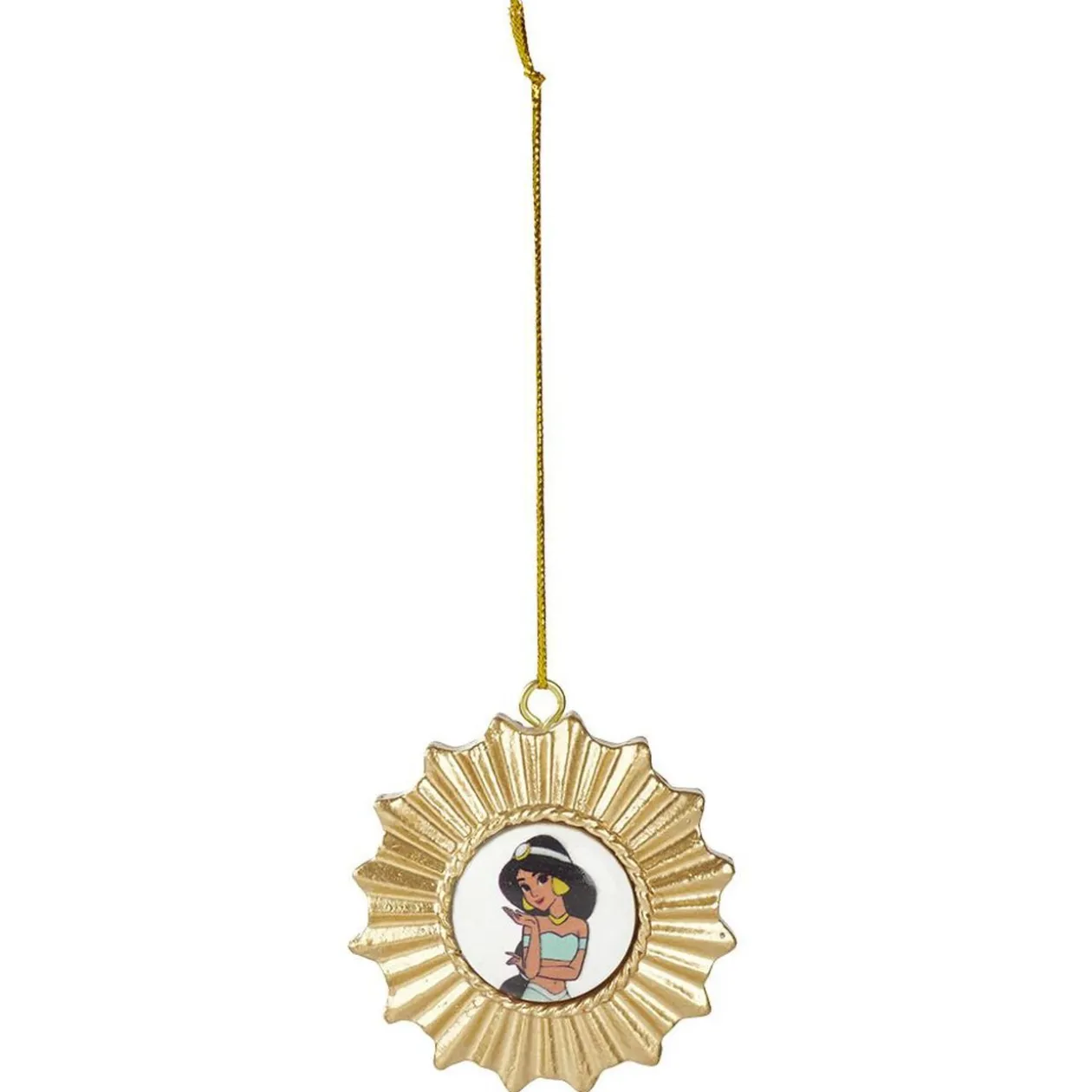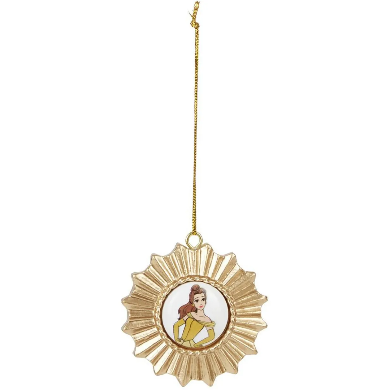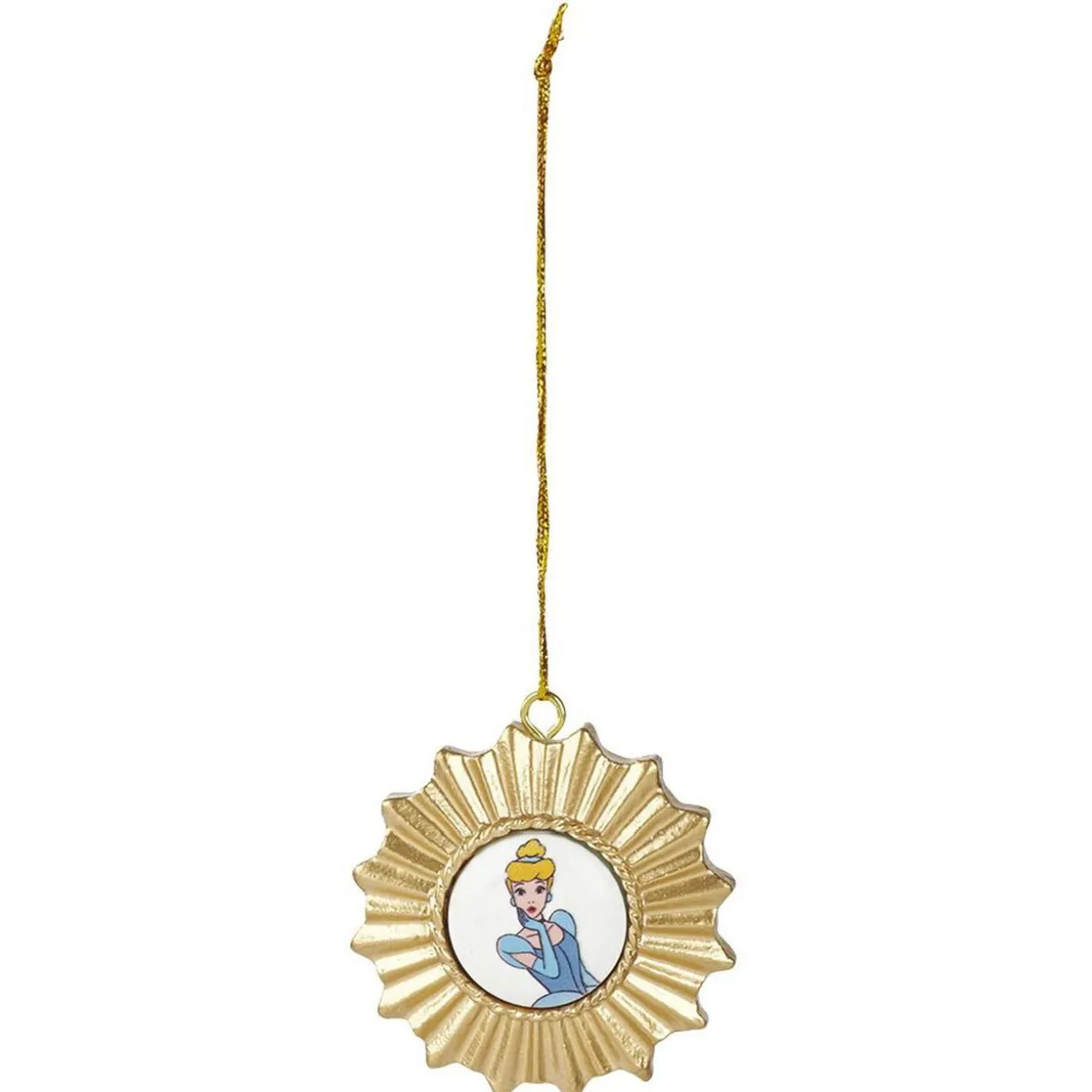 Décoration de Noël dorée en forme de soleil avec à l’intérieur une princesse Disney Cendrillon, Ariel, Raiponce, Jasmine ou Belle.