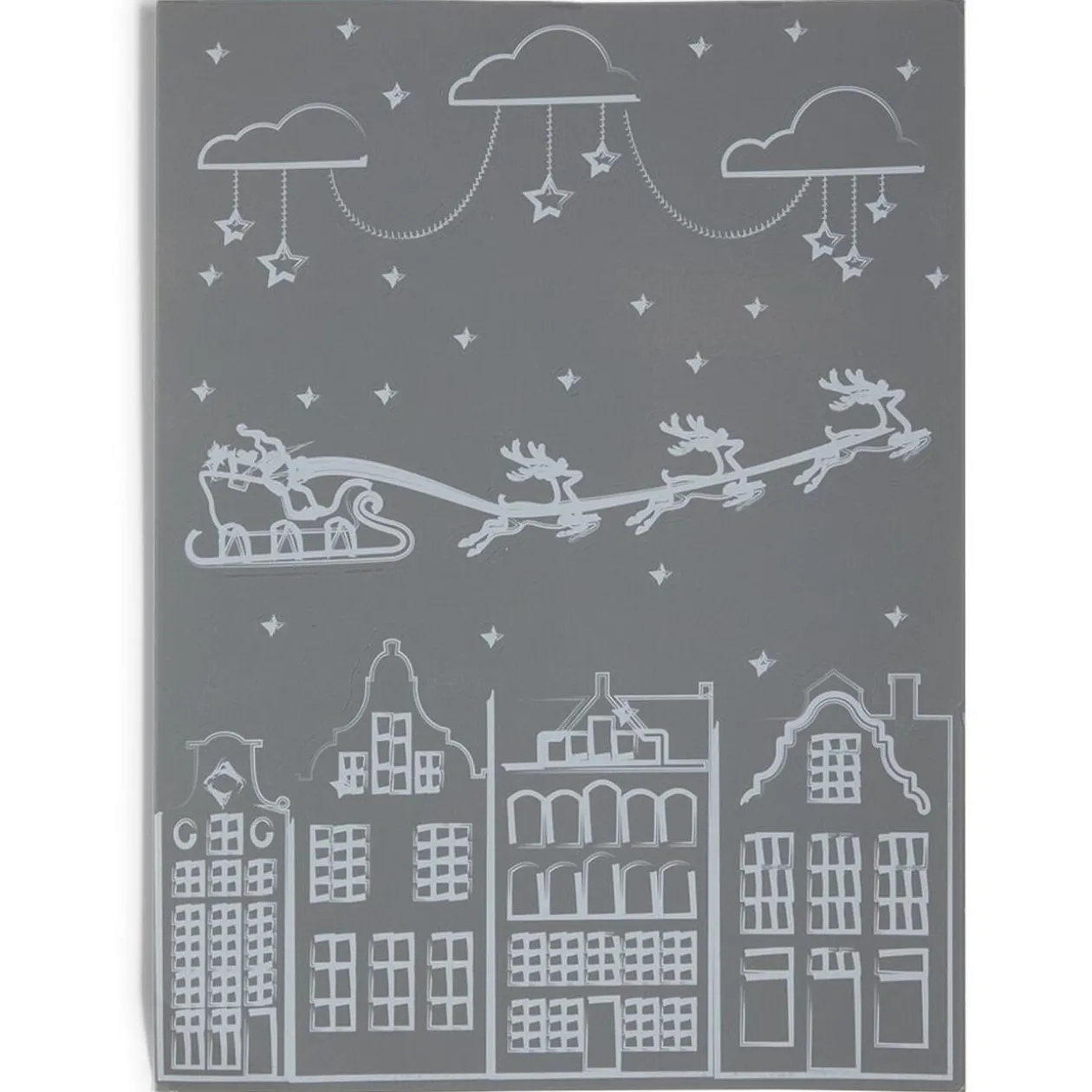 Des petits cadeaux et un lutin de Noël, ou encore le traineau du Père-Noël dans le ciel, vous allez craquer pour ce décor de fenêtre électrostatique effet dessin blanc.