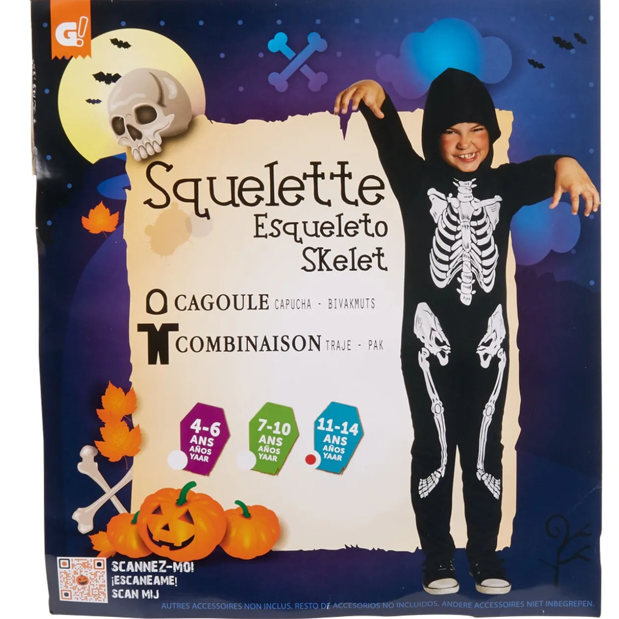 Fais peur à tes amis le temps d’une terrifiante soirée grâce à ce costume de squelette. Tu auras le déguisement le plus morbide pour Halloween avec la cagoule et la combinaison d’ossements.