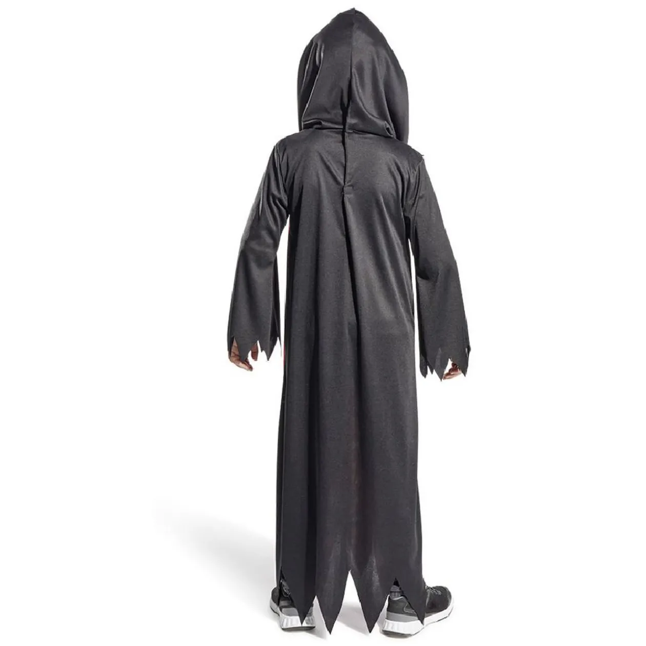 Deviens le gardien des ténèbres le plus effroyable avec ce déguisement qui se compose d’une tunique à capuche de couleur noire avec imprimé têtes de mort enflammées.