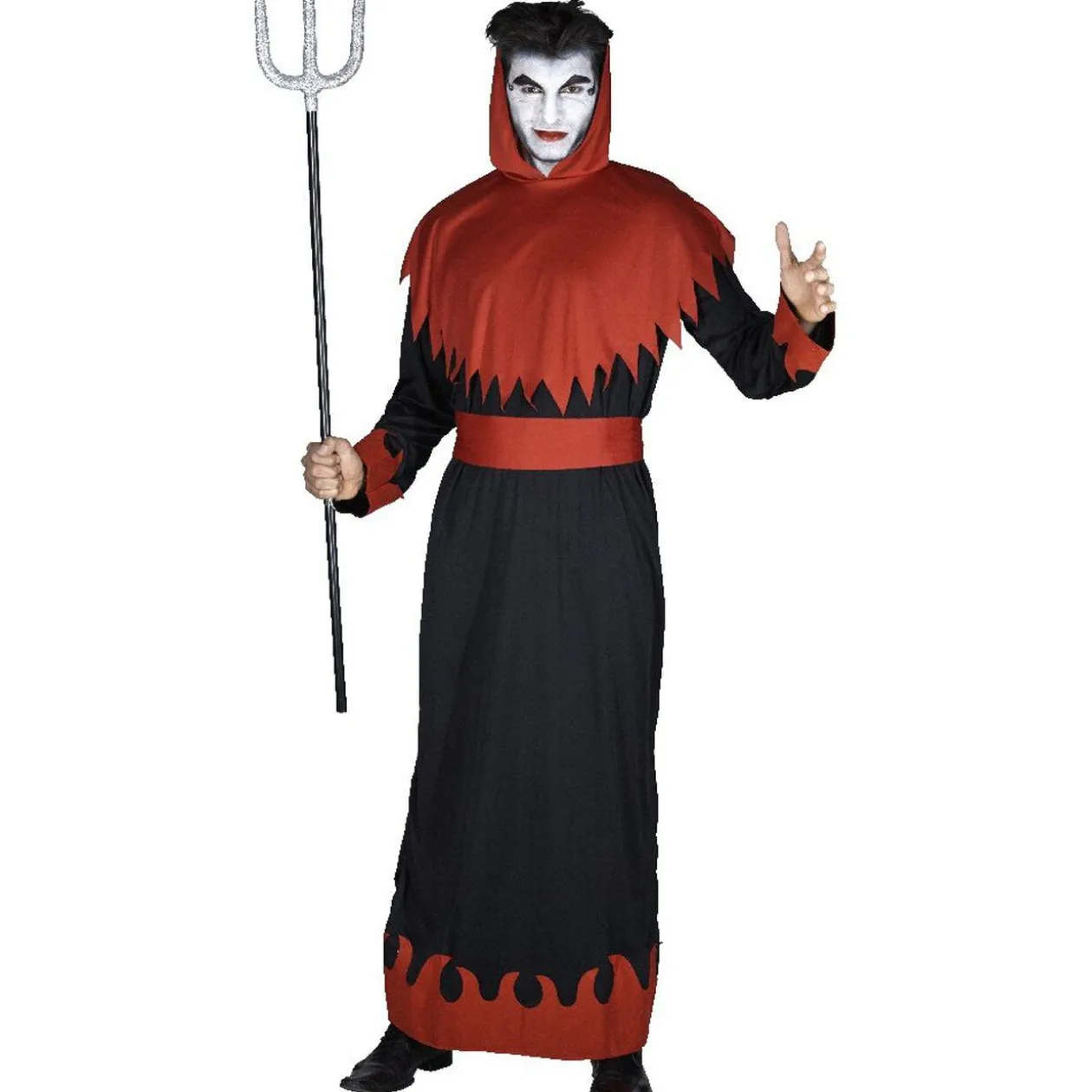 Déguisement homme démon comprenant 1 robe noire et rouge, polyester.