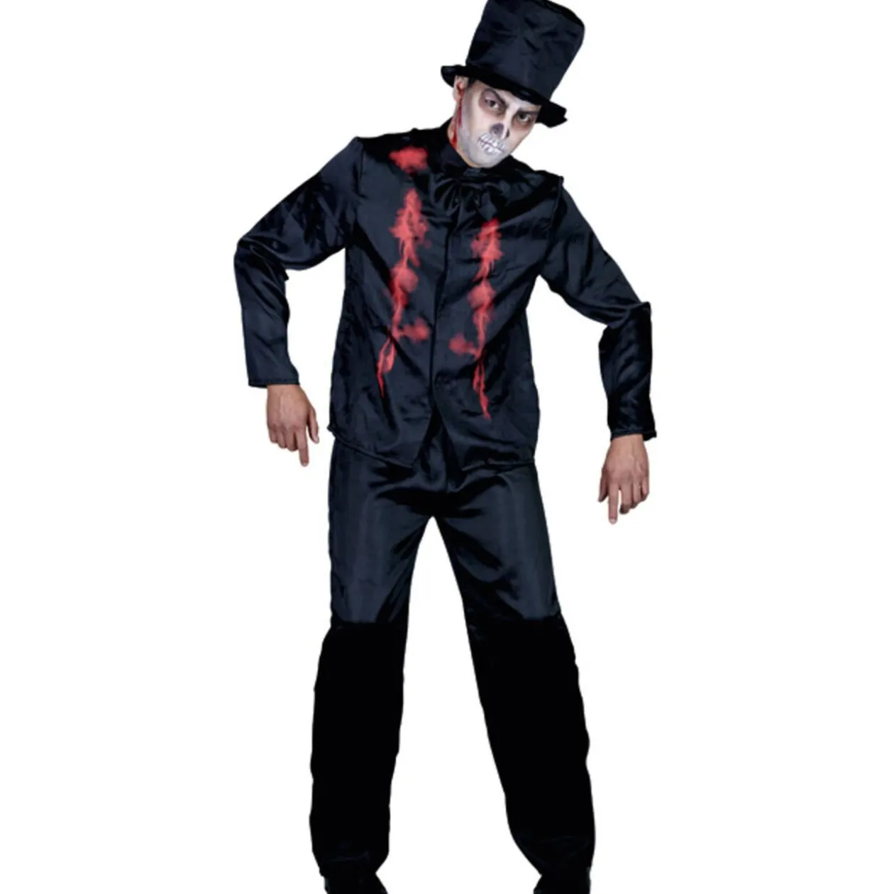 Déguisement homme marié mort comprenant 1 chemise, 1 pantalon et 1 chapeau, polyester, taille 52.