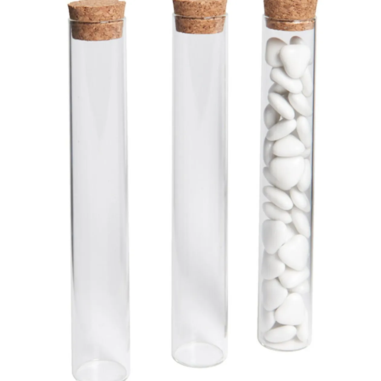 3 tubes à essai transparents pour dragées, h. 15 cm, verre. Contenant à dragées idéal pour votre mariage ou autre évènement. Vendu sans dragées.